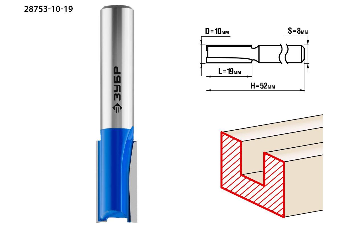 Фреза ЗУБР Ф 10мм S 8мм I 19мм (28753-10-19)