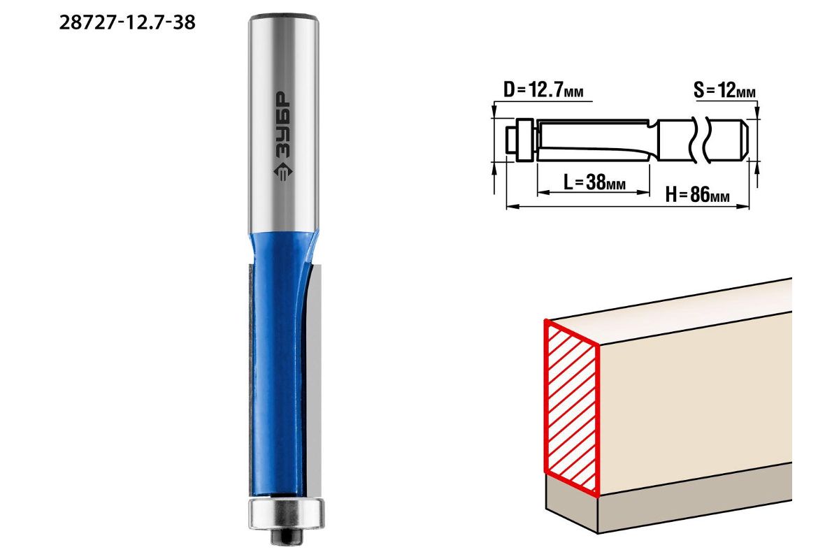 Фреза ЗУБР 28727-12.7-38 кромочная с нижним подшипником d= 12.7мм дл.-38мм хв.-12мм d-12.7мм