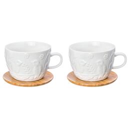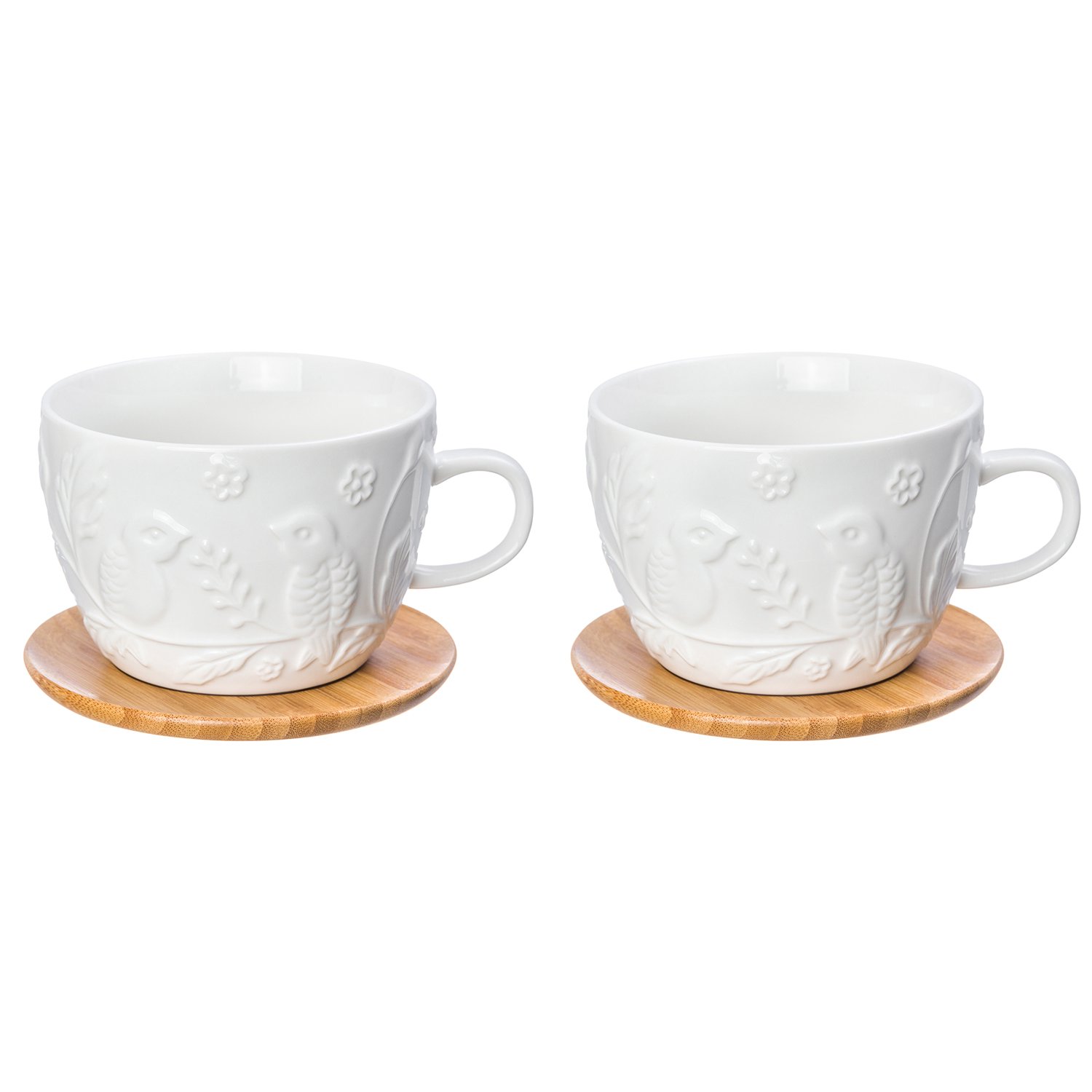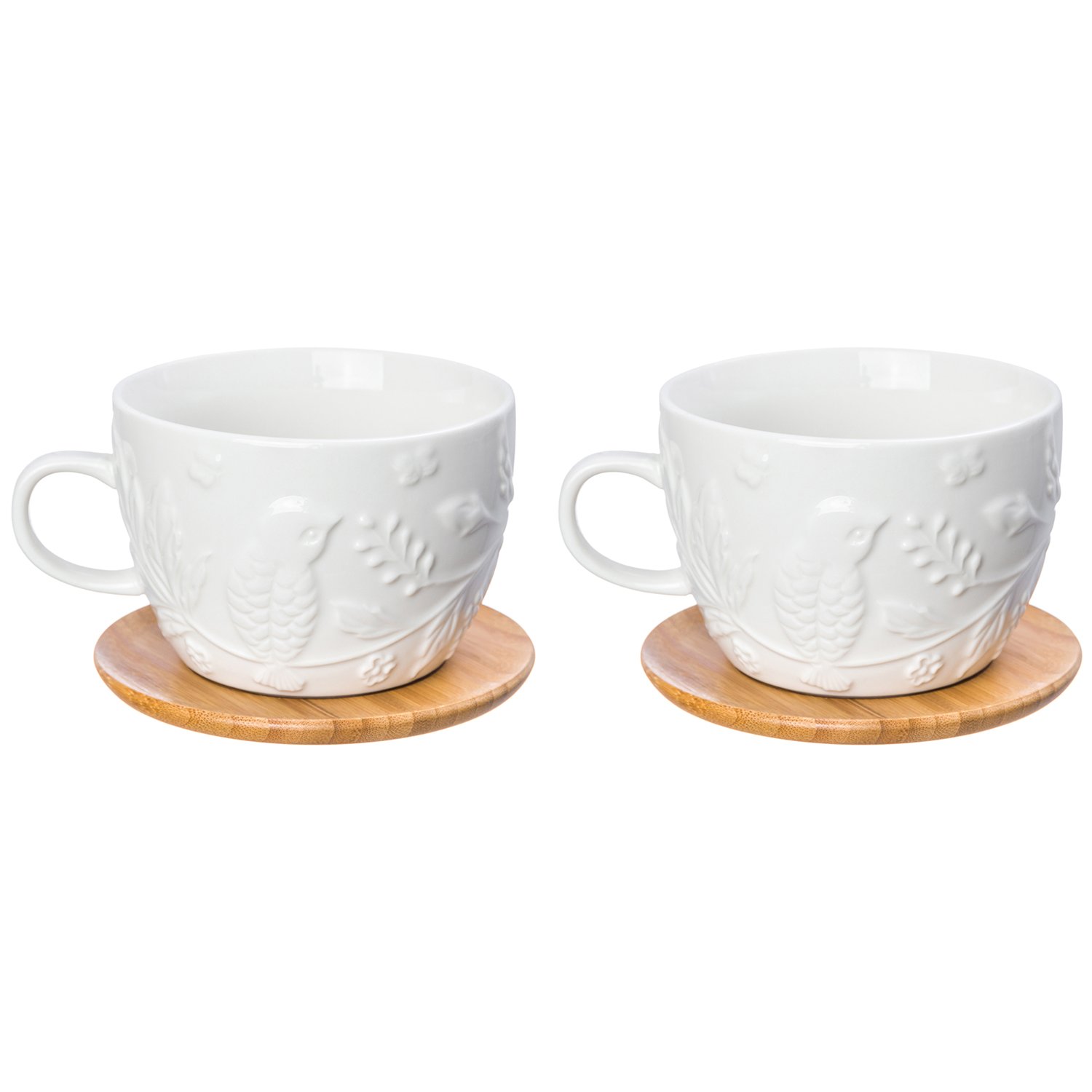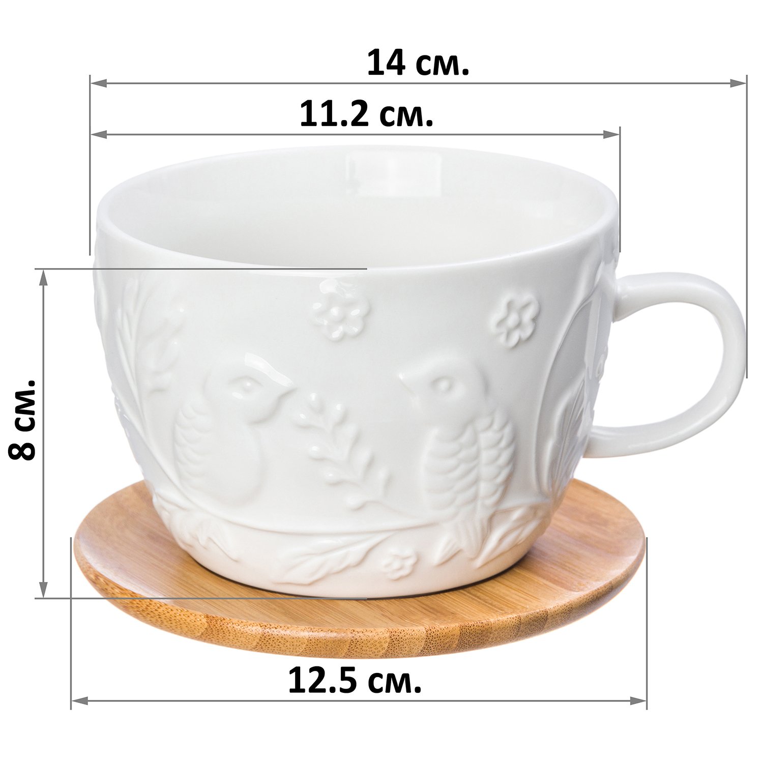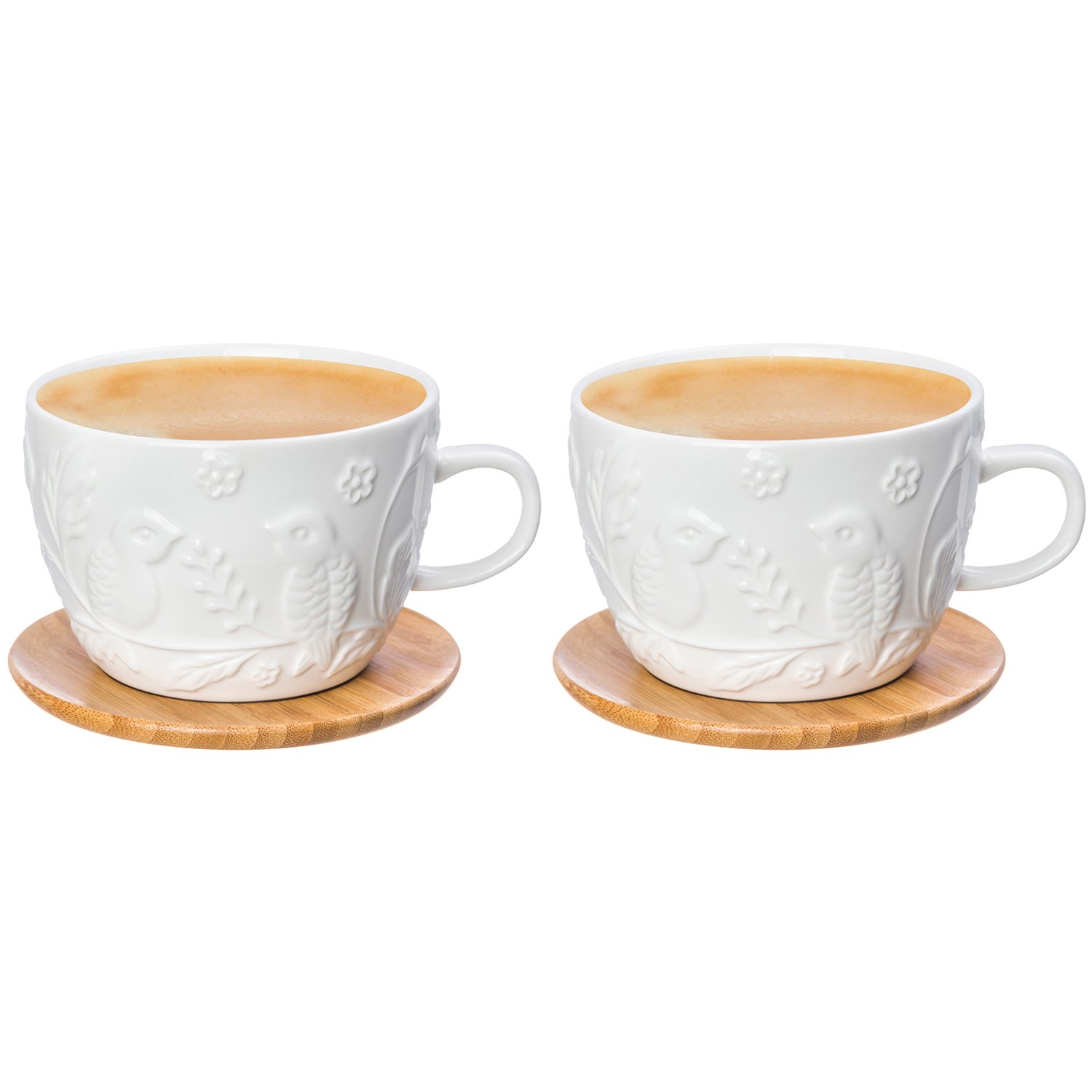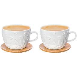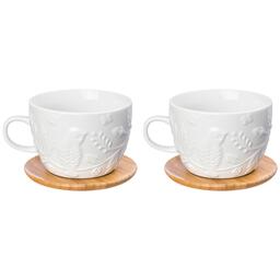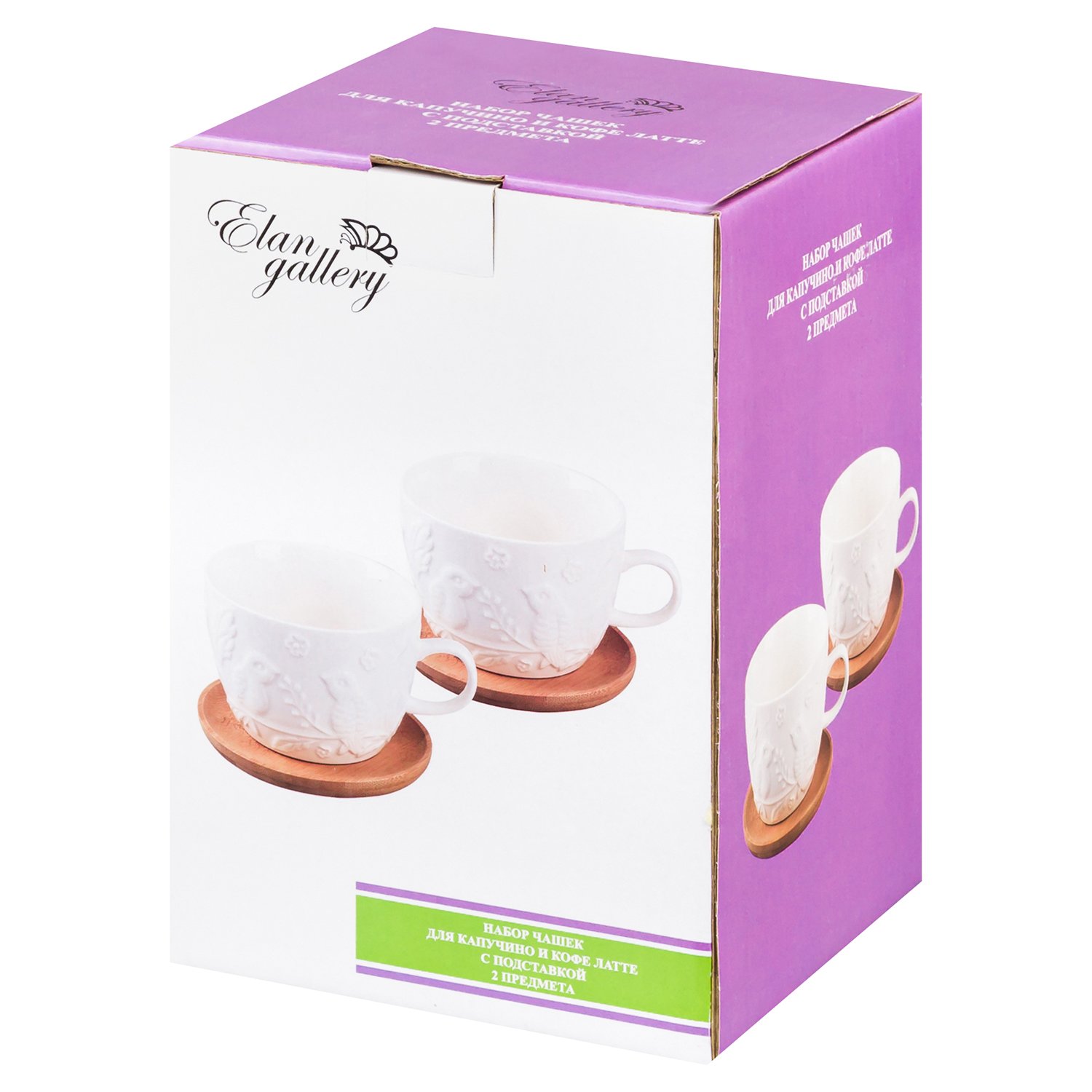 Чашки для капучино Elan Gallery 2 шт по 500 мл 14х11.2х8 см Птички на ветке на деревянной подставе 540345