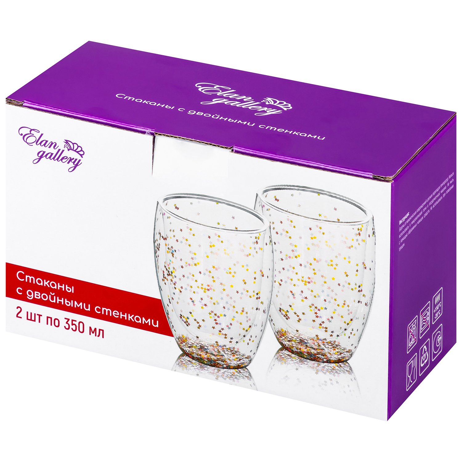 Набор стаканов Elan Gallery 2 шт 350 мл Crystal glass с двойными стенками и декором из глиттера 360140