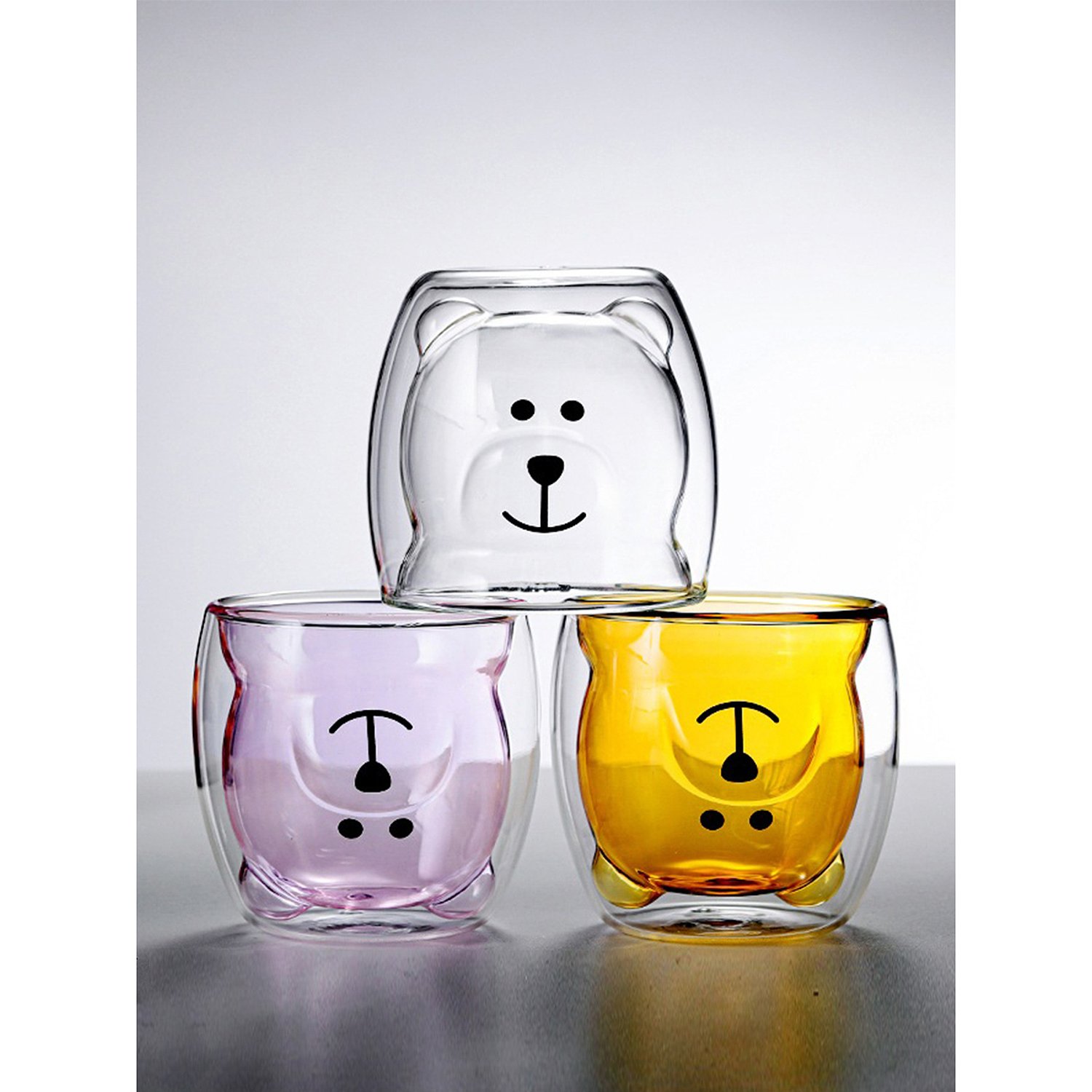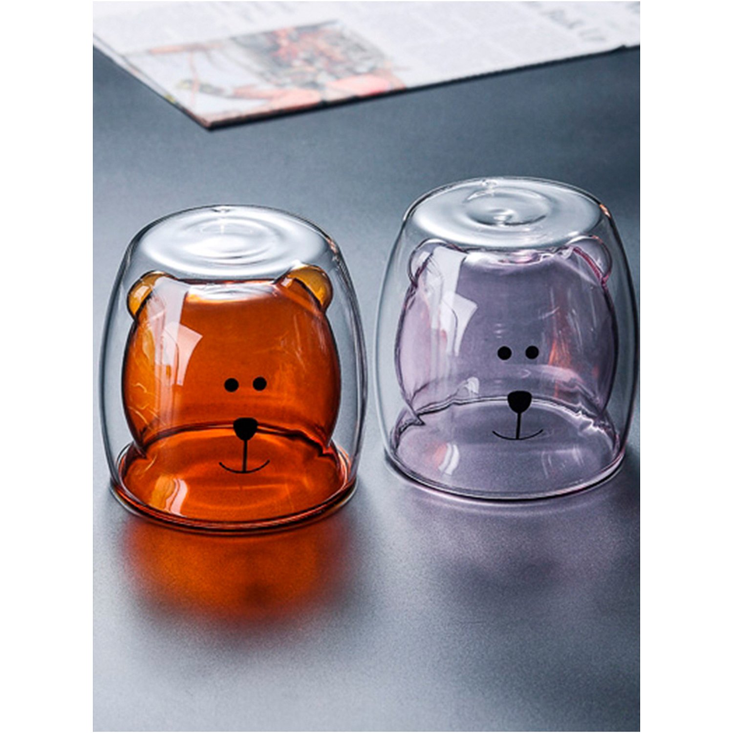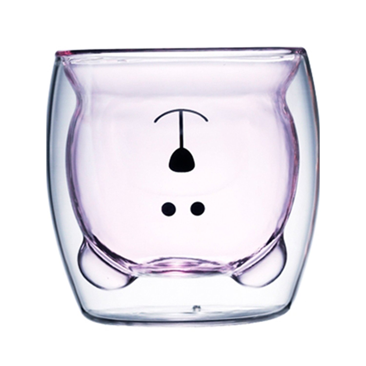 Стеклянный стакан KIMBERLY с двойными стенками розовый мишка 250 мл 813255