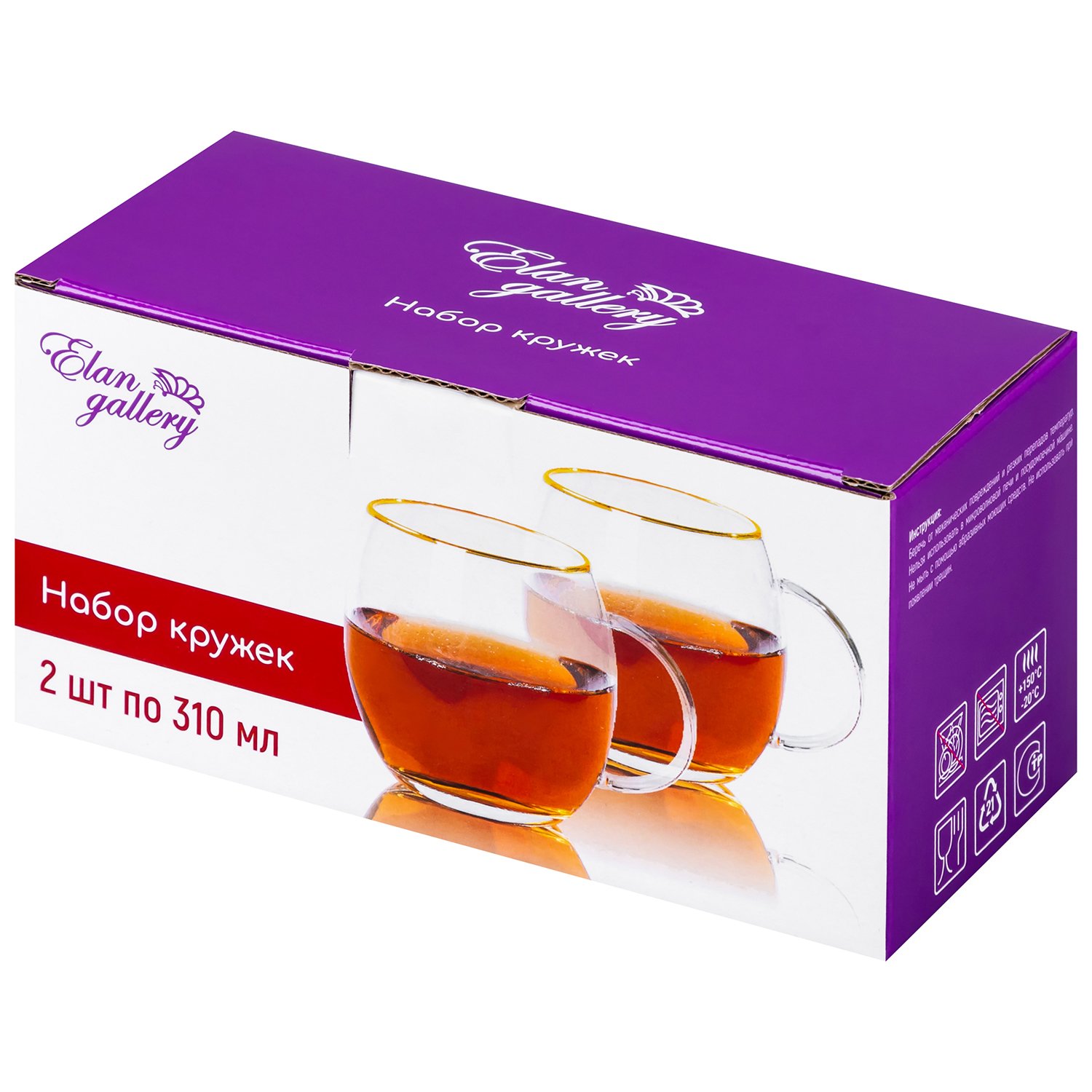 Набор кружек Elan Gallery 2 шт 310 мл Crystal glass с золотой каймой 360132
