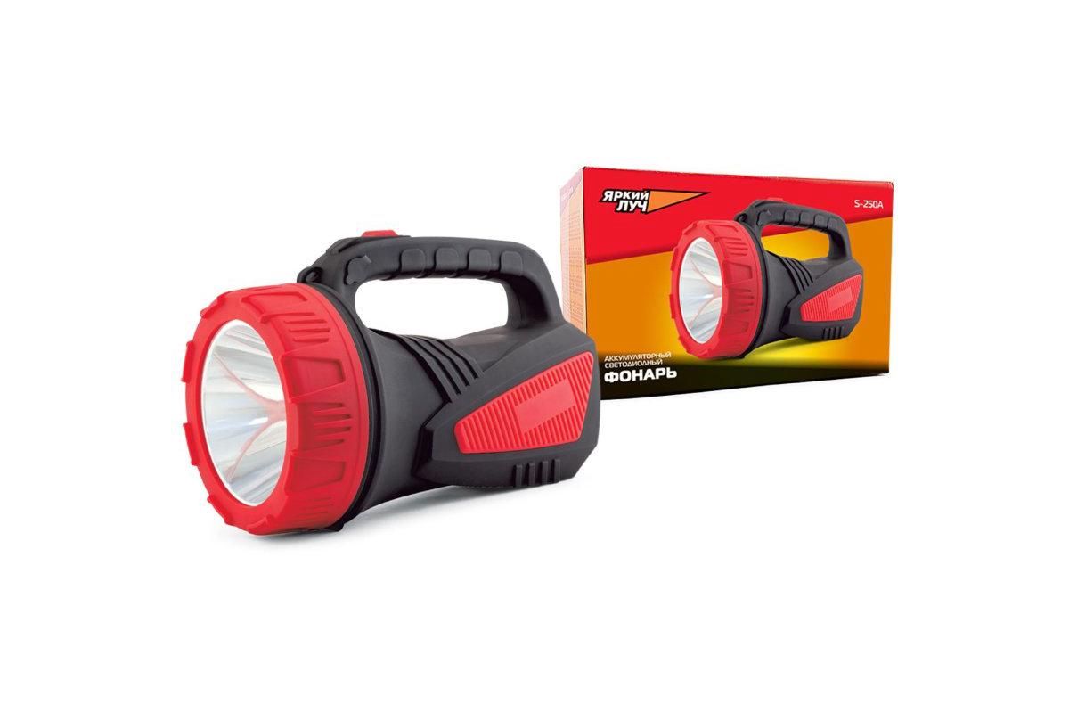 Фонарь ЯРКИЙ ЛУЧ S-250A аккум. св/диод. прожектор 5W, 2 режима (100/250лм), прорезин.корпус