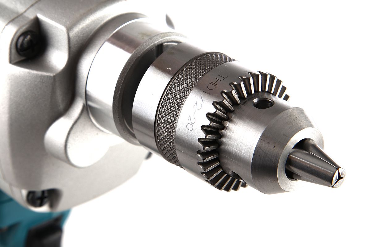 Оснастка на миксере-дрели фиксируется ключевым металлическим патроном, позволяющим использовать насадки от 2 до 13 мм в диаметре. Легкий алюминиевый корпус редуктора делает агрегат более прочным и долговечным. Увеличенные вентиляционные отверстия по бокам металлического кожуха дают улучшенное вентилирование двигателя для защиты от перегрева.