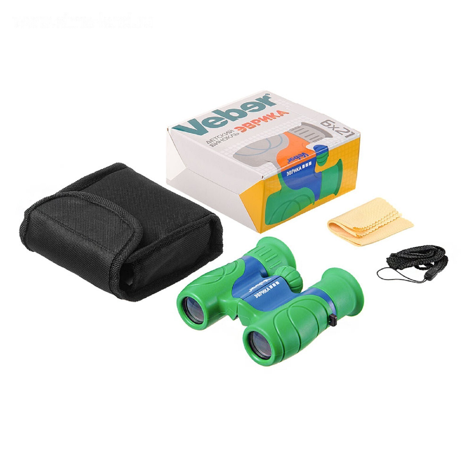 Бинокль детский Veber «Эврика», 6 × 21, G/B, цвет зелёный / синий