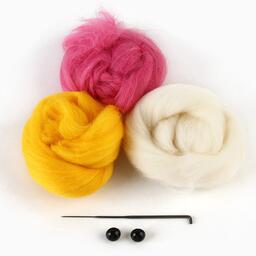 В этом наборе собрано всё самое необходимое для создания своими руками игрушки в технике сухого валяния. Раньше чтобы смастерить что-то подобное приходилось искать шерсть разных цветов в магазине, у бабушки, в маминых коробочках с пряжей, а теперь всё необходимое есть в комплекте для творчества. Теперь каждый, даже начинающий любитель фелтинга, быстро смастерит красивую игрушку.