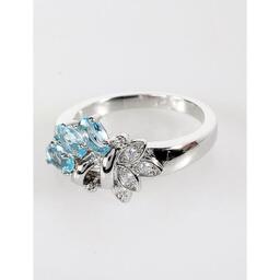 Кольцо с голубым фианитом "Ягодная гроздь", родирование, размер 17