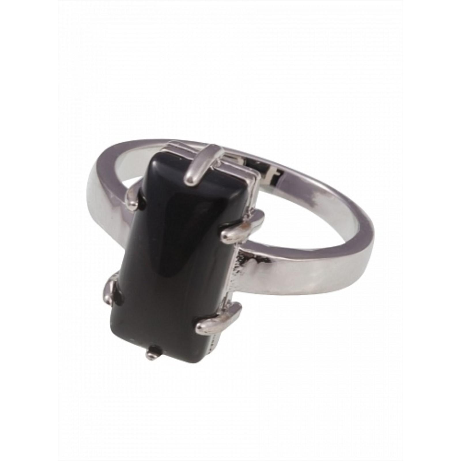 Кольцо с чёрным ониксом "Марго", родирование, размер 17