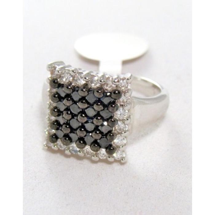 Кольцо с чёрным фианитом "Квадрат", родирование, размер 17
