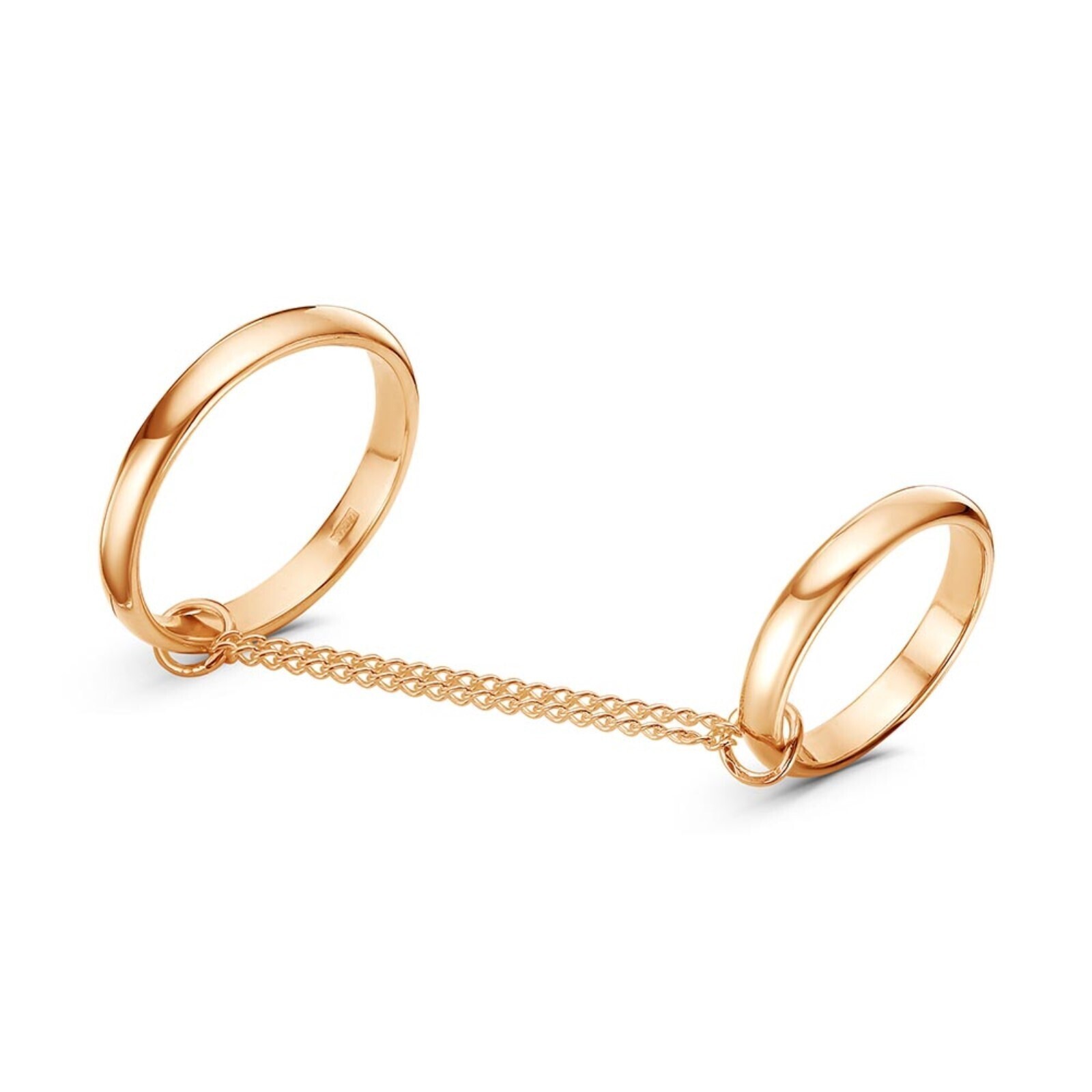 Кольцо "Двойное на цепочке" розовое золочение, 18 размер