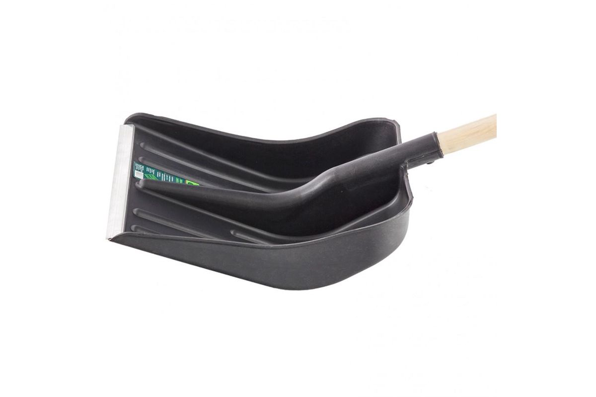 Снеговая лопата имеет удобный глубокий ковш из мороустойчивого пластика. Рабочая кромка ковша дополнительно снабжена окантовкой из оцинкованной стали.