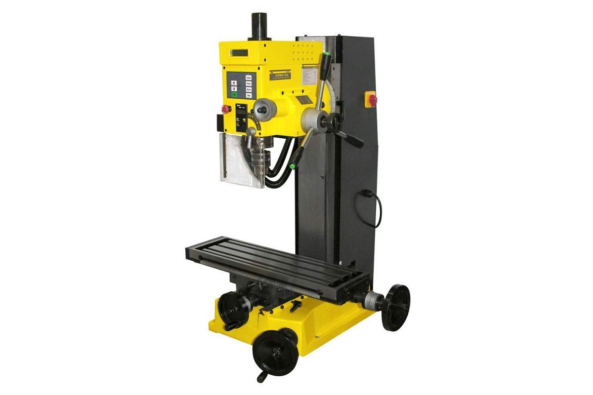 Корвет-415 — малогабаритный фрезерный станок для небольших мастерских, в том числе домашних. Предназначен для фрезерования и сверления по металлу, дереву и пластмассе. Станок оснащен электродвигателем на 1700 Вт и регулятором скорости (100-1750 об/мин). Для удобства работы предусмотрена цифровая индикация. Вес модели — 150 кг.