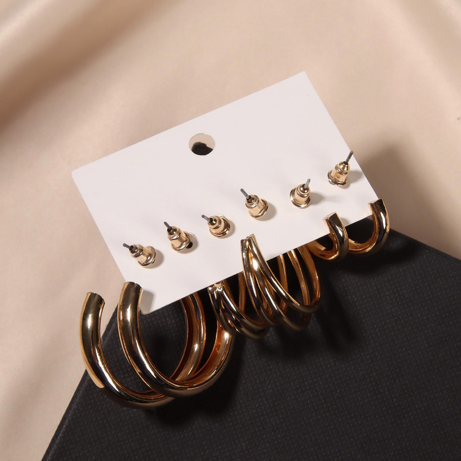 Серьги-кольца набор 3 пары "Классика" консерватизм, цвет золото, d=3