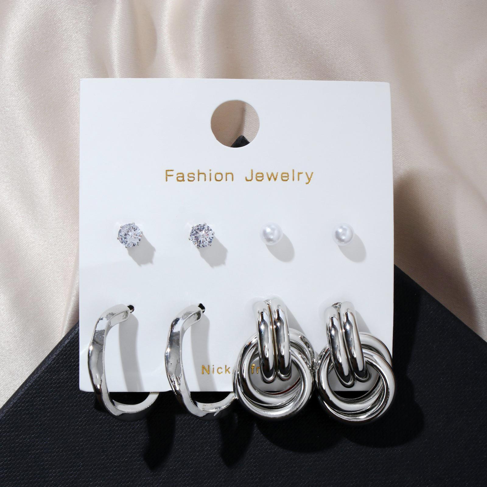 Серьги набор 4 пары "Летние истории" кольца и плетение, цвет белый в серебре