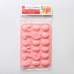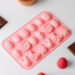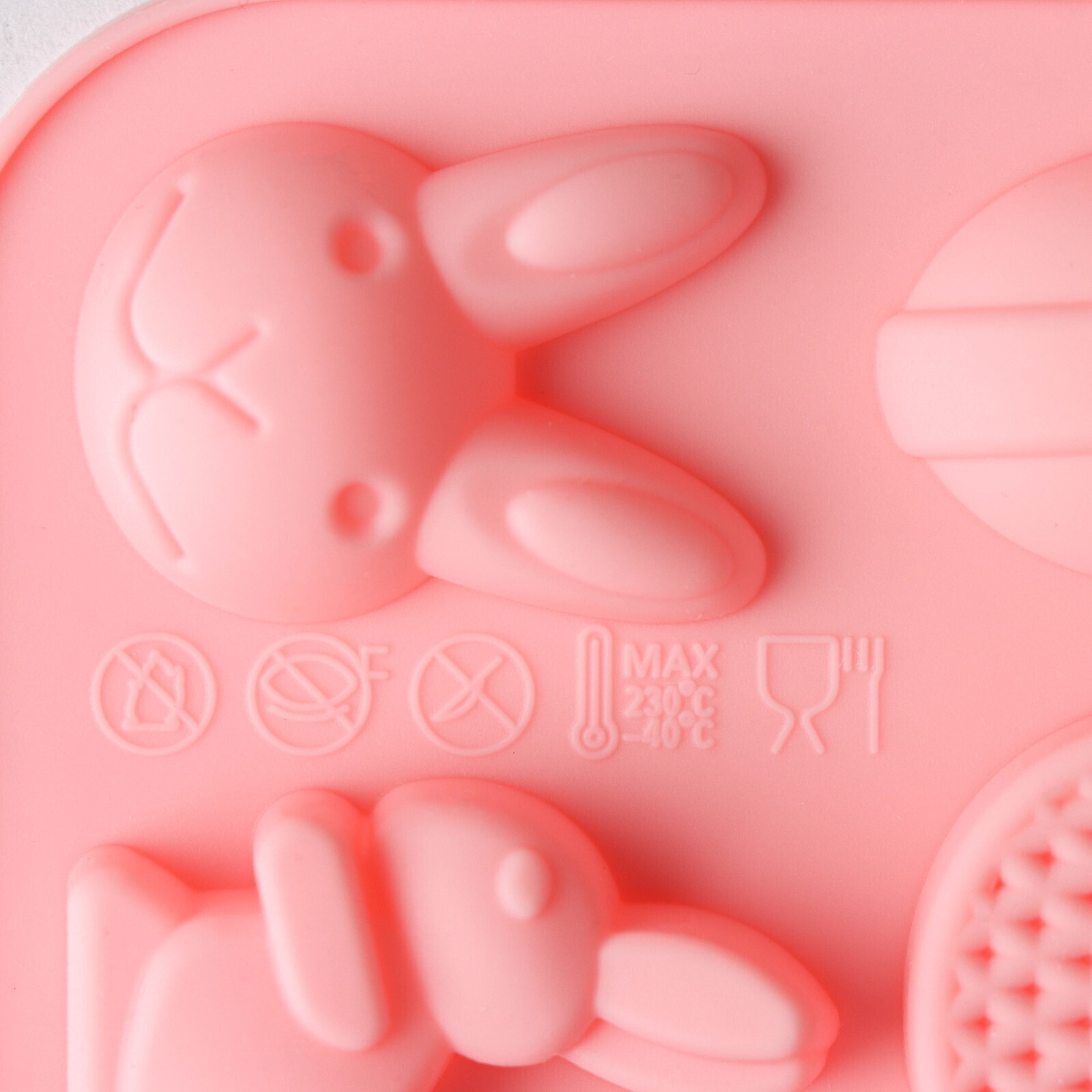 Форма для льда и кондитерских украшений «Пасхальные кролики», 18 ячеек, 19×12,5×1см, цвет розовый