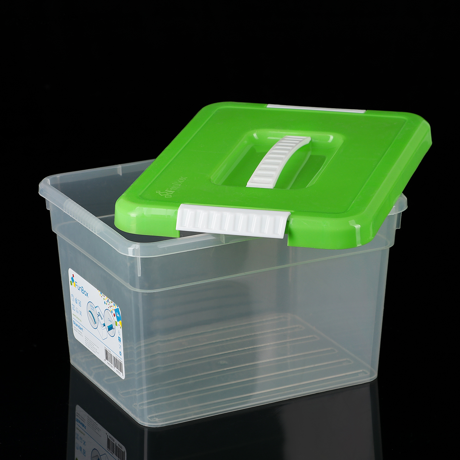 Удобная прочная ручка для переноски не мешает при установке ящиков друг на друга. Ручка и замки-защёлки выдерживают нагрузку до 10 кг.