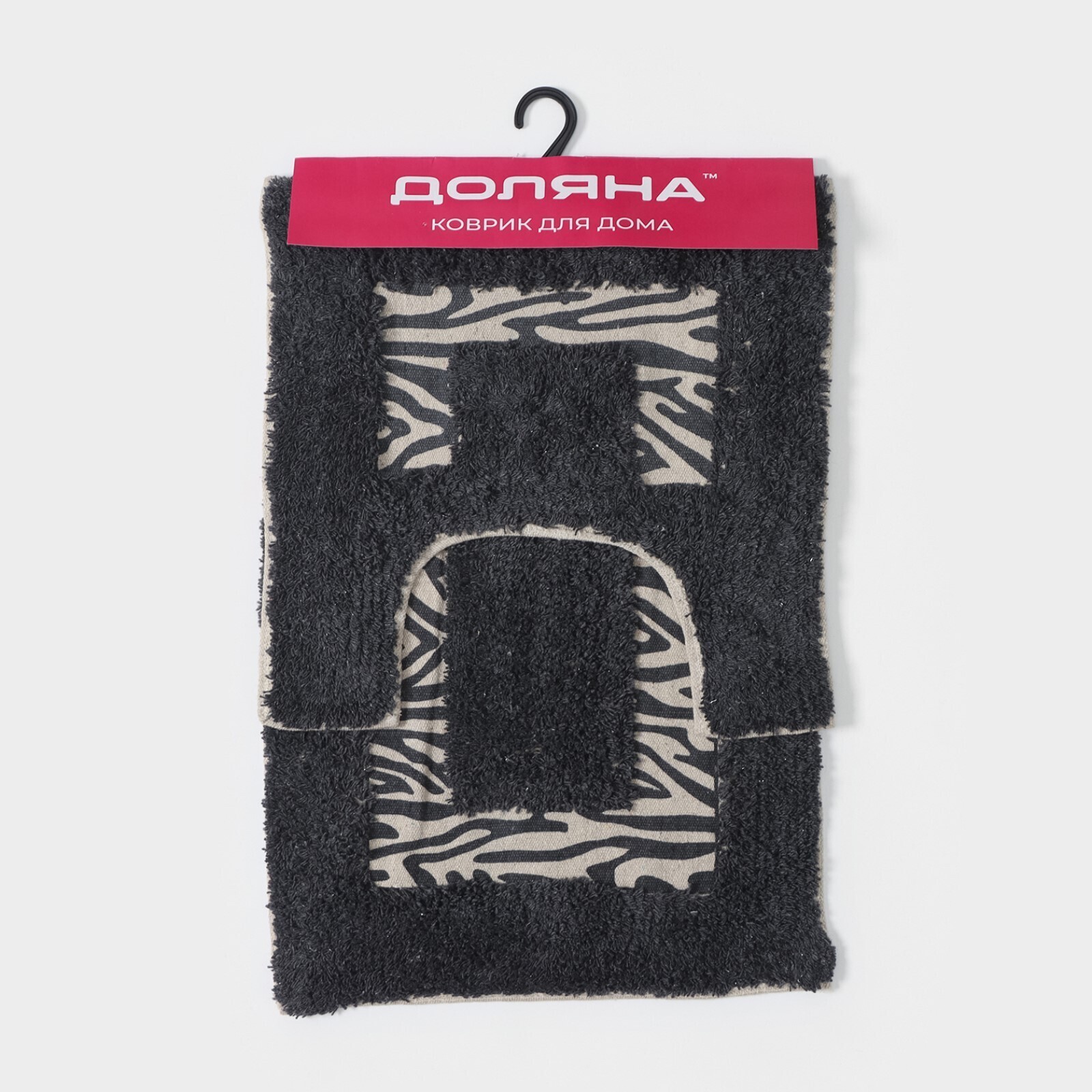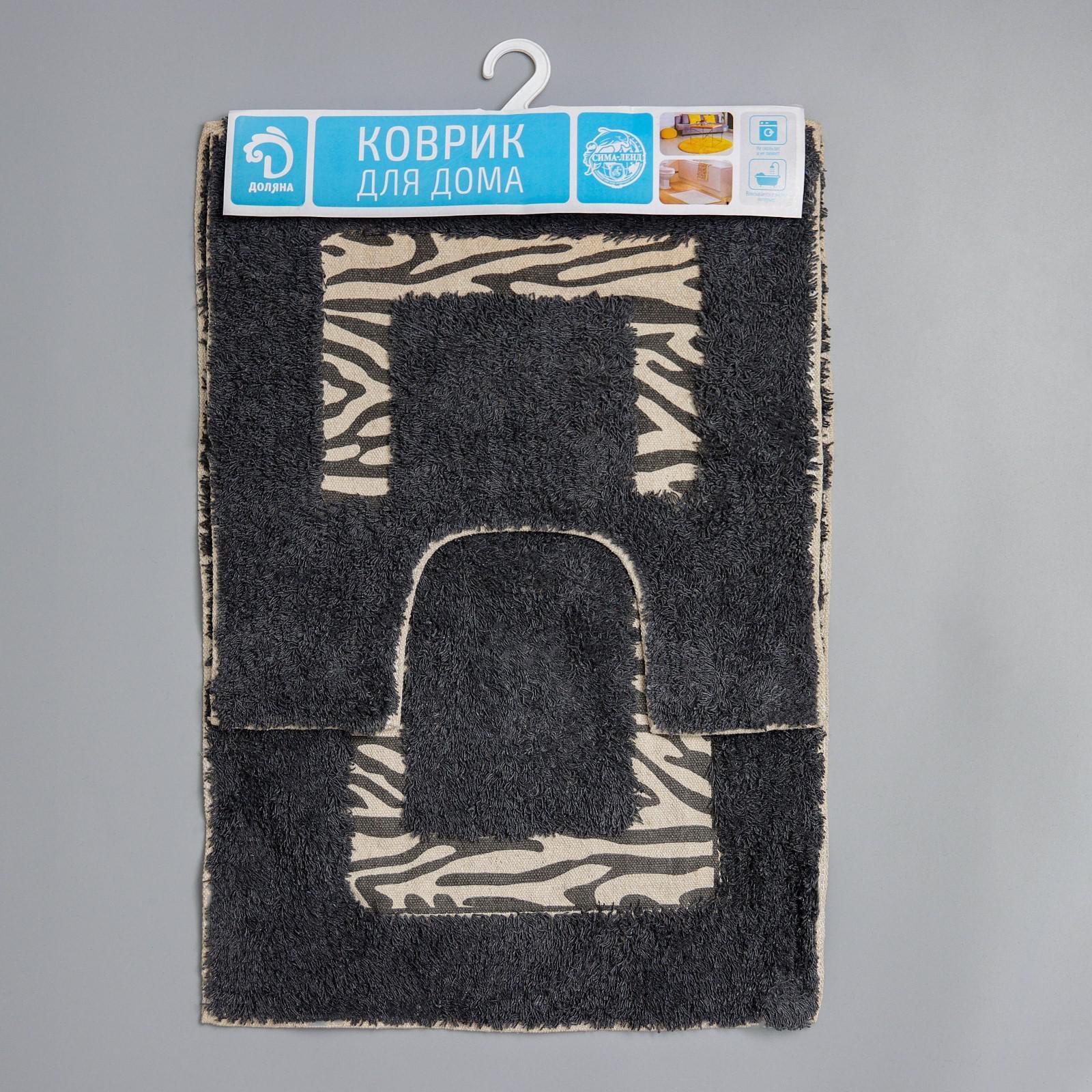 Набор ковриков для ванны и туалета Доляна «Зебра», 2 шт: 40×40, 40×60 см, 900 г/м2, 100% хлопок