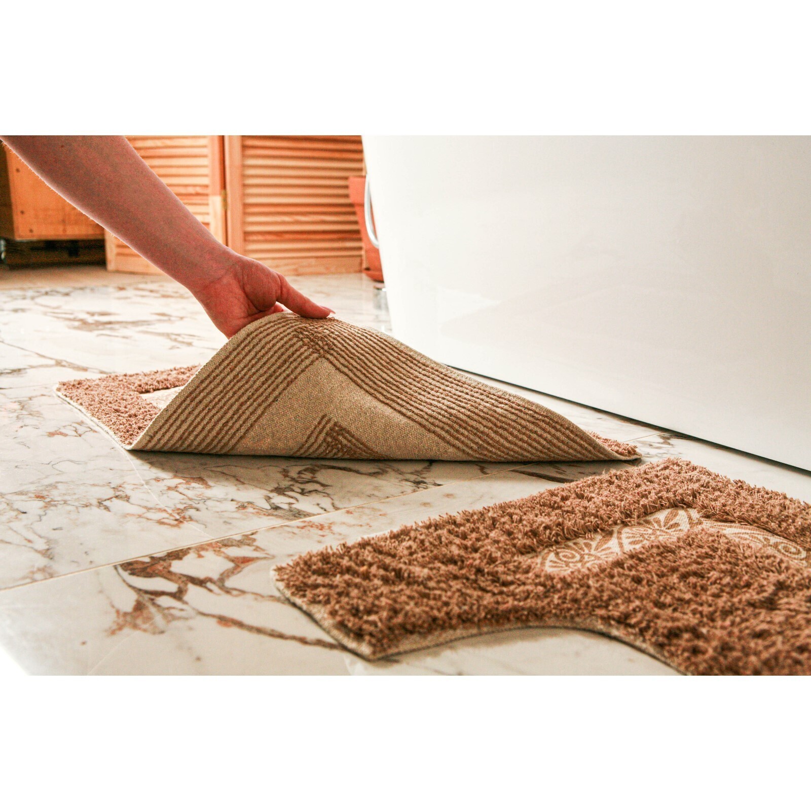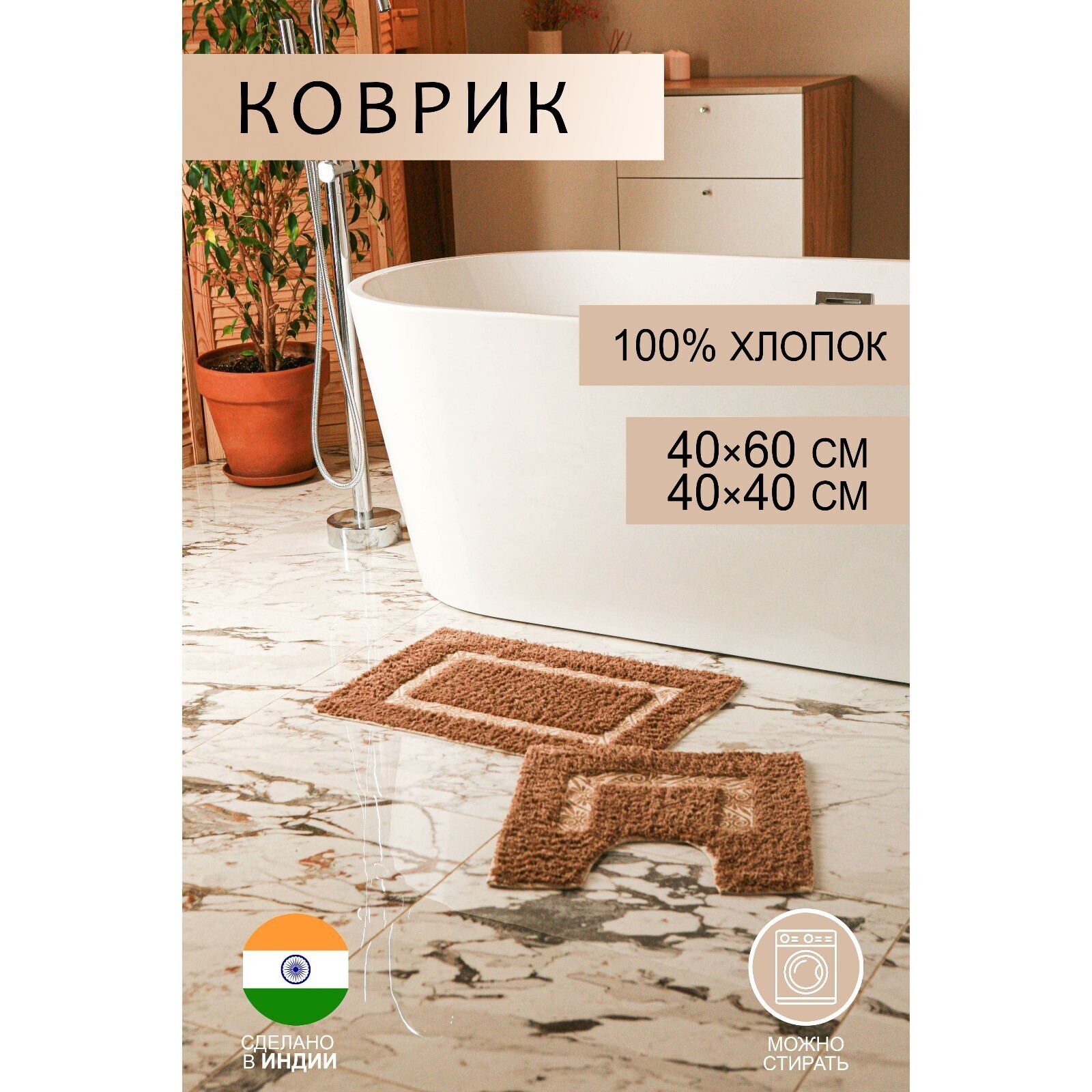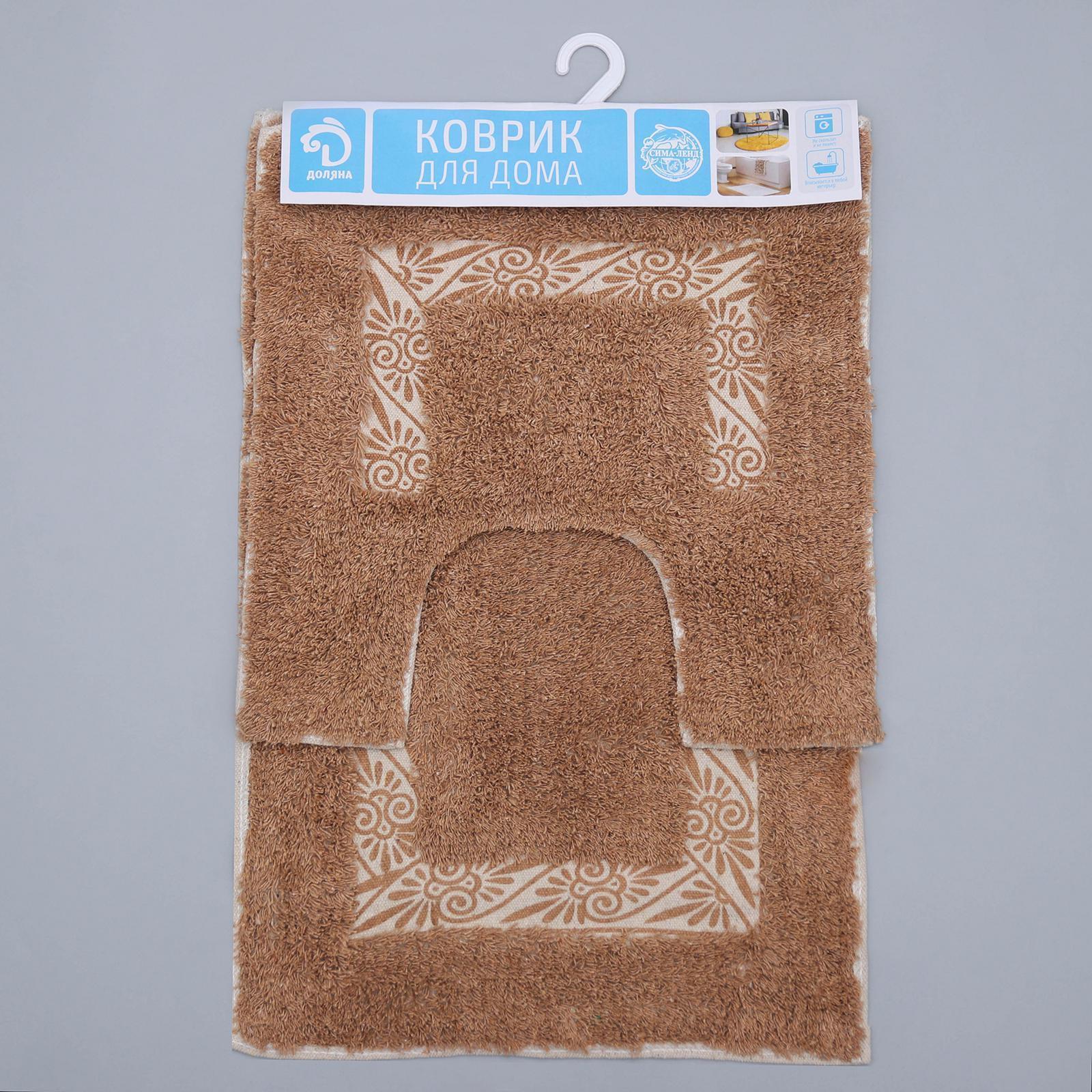 Набор ковриков для ванны и туалета Доляна «Вензель», 2 шт: 40×40, 40×60 см, 900 г/м2, 100% хлопок, цвет коричневый