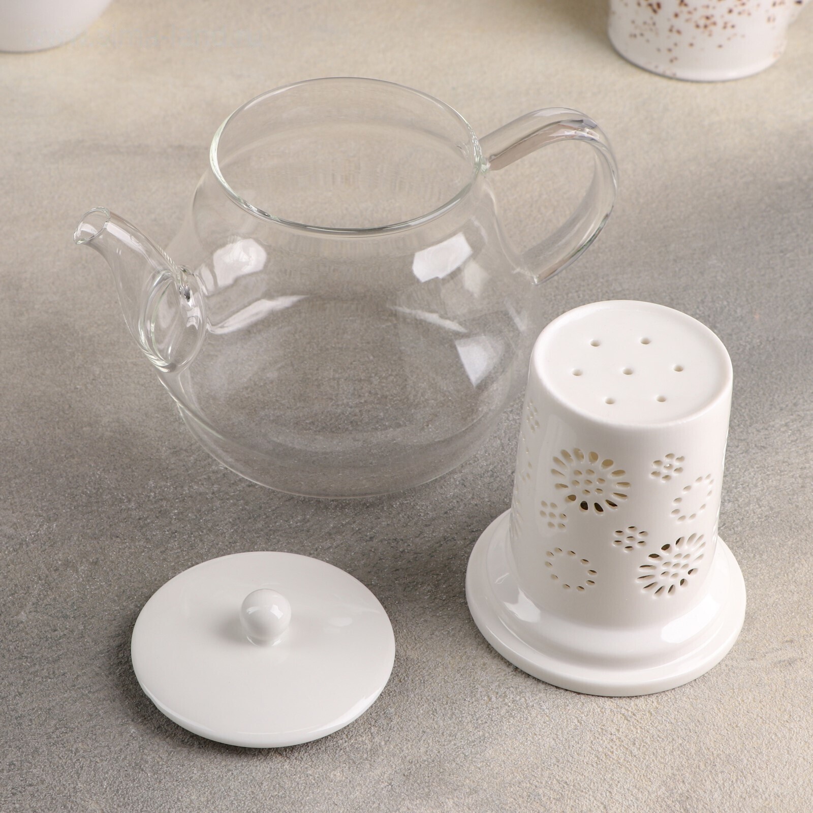 Чайник заварочный «Нежность», 700 мл, с керамическим ситом, цвет белый