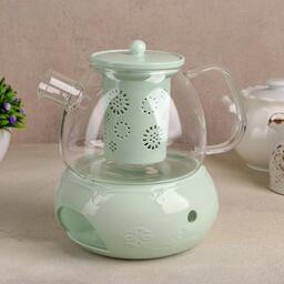 Набор чайный «Нежность», на 6 персон, 9 предметов, чайник стеклянный заварочный 700 мл, кружка 100 мл, цвет мятный