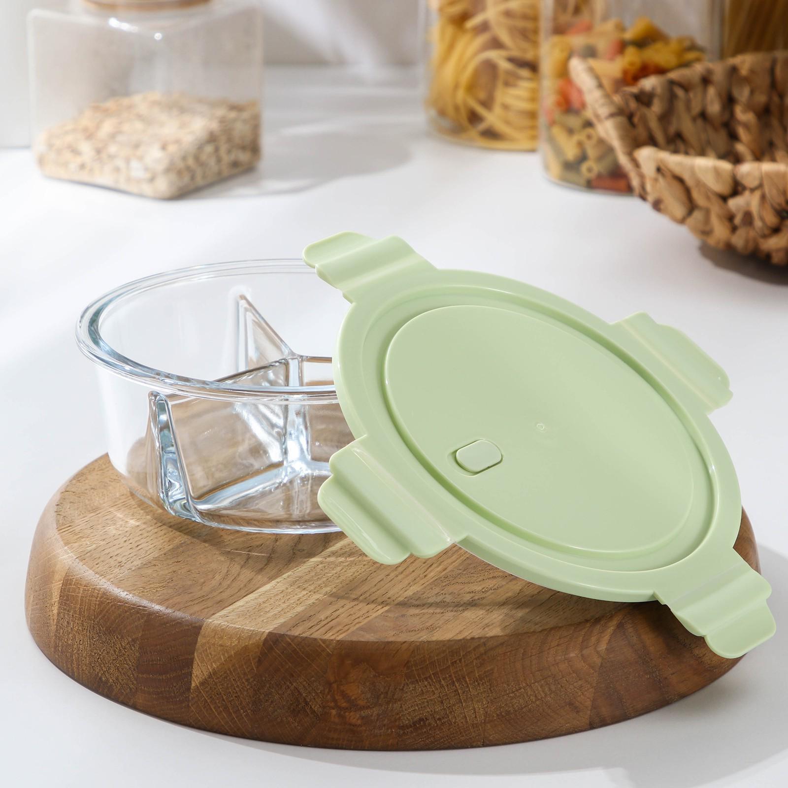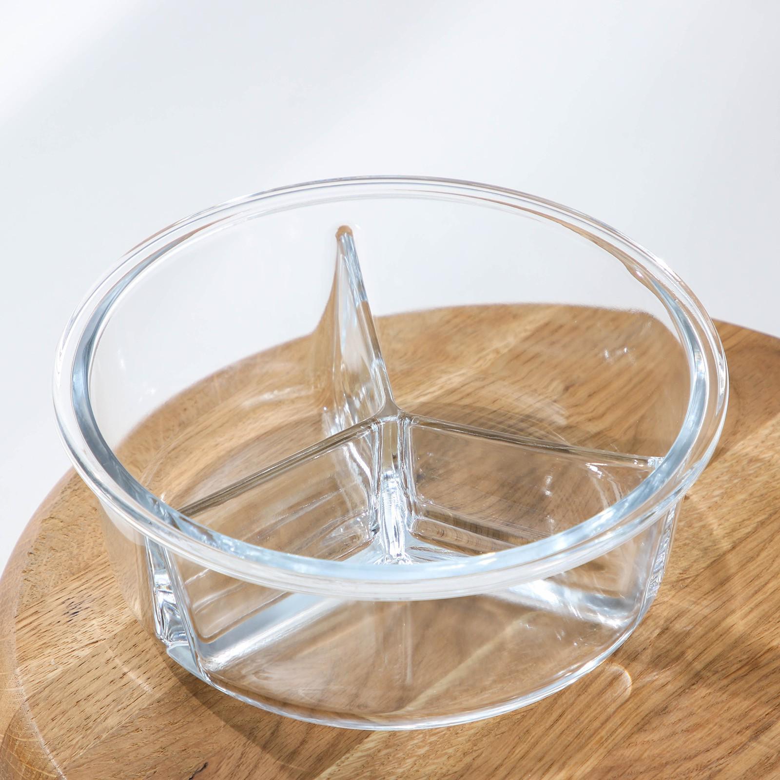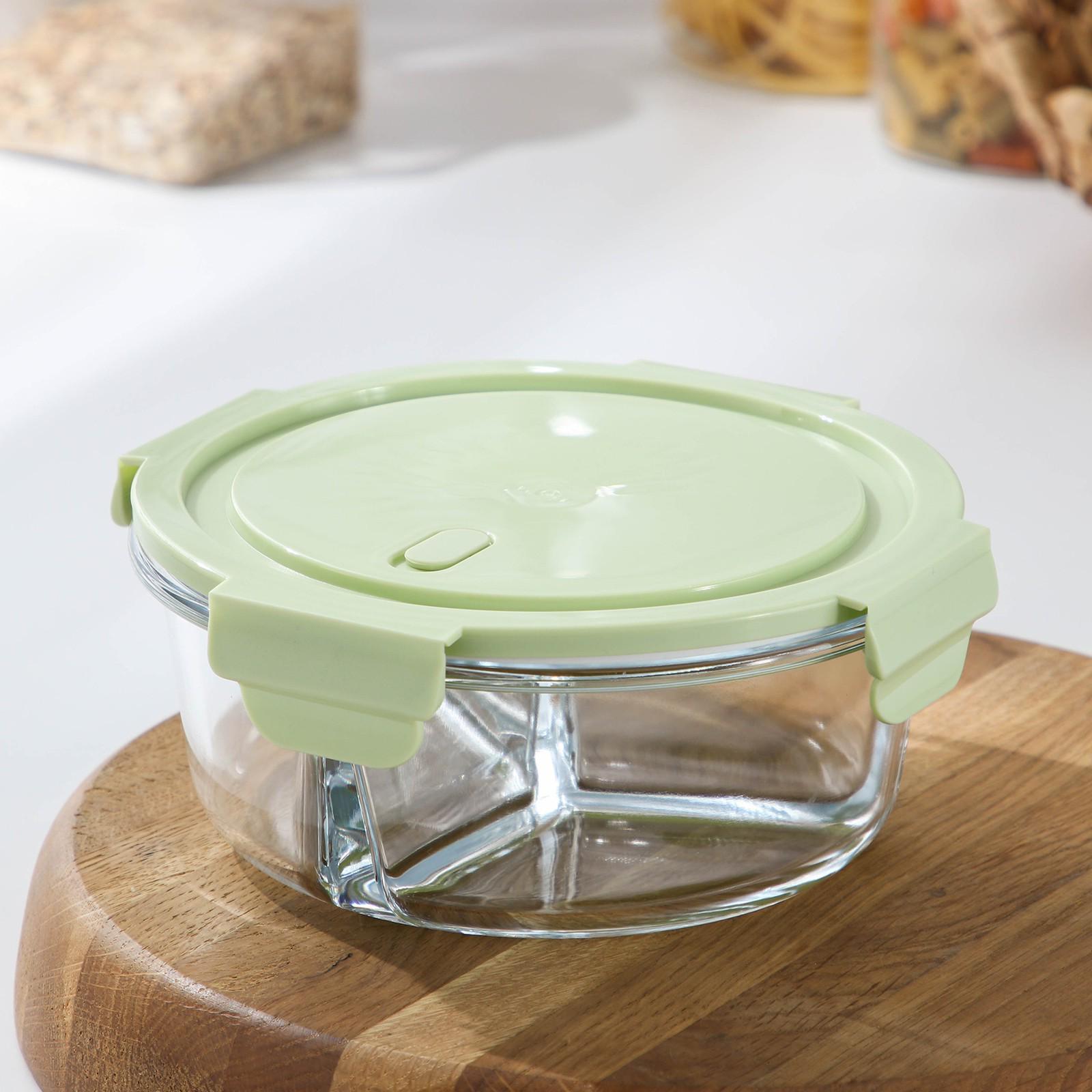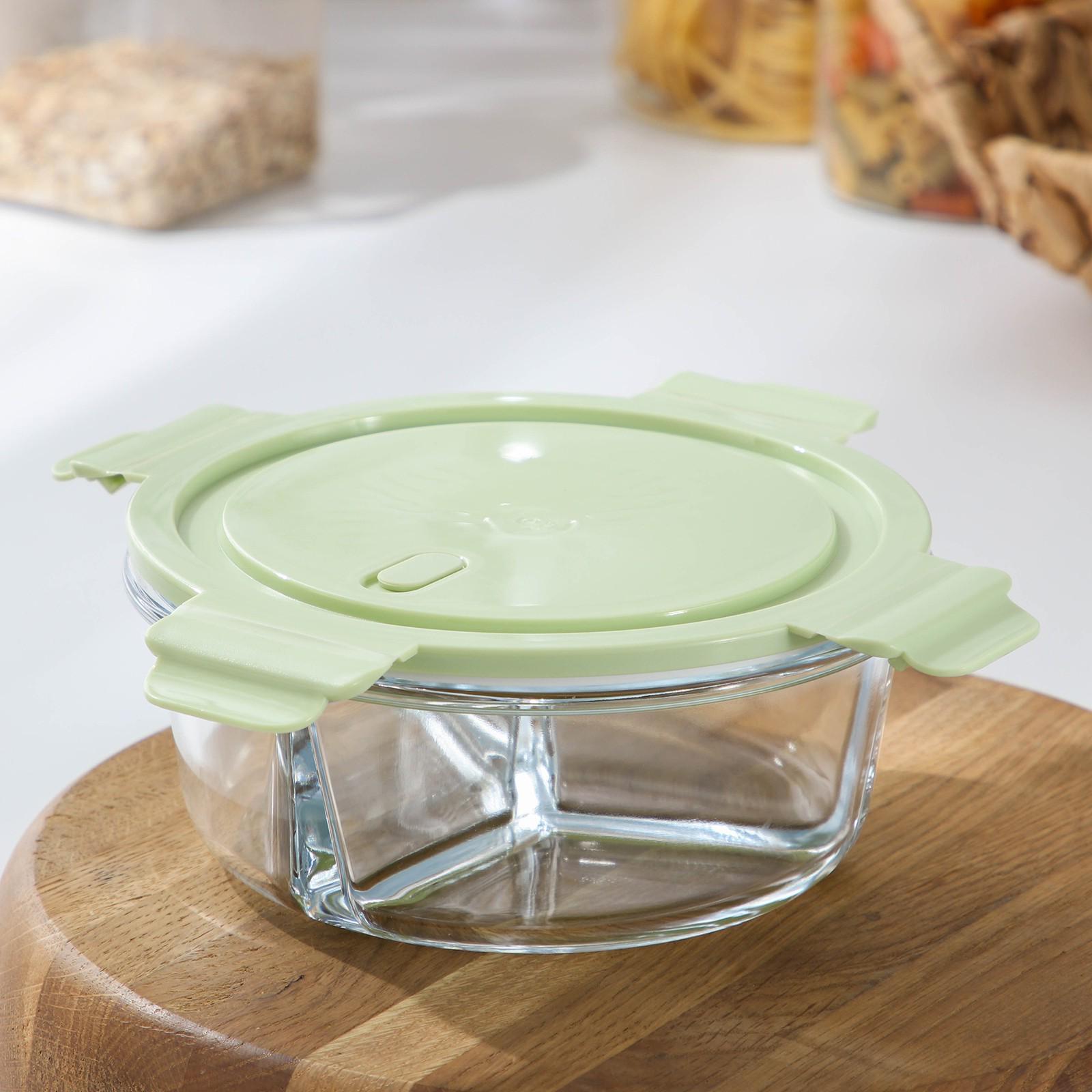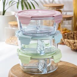 Контейнер из жаропрочного стекла трехсекционный круглый Cookn Freeze, 750 мл, 18×7,2 см, с крышкой, цвет МИКС