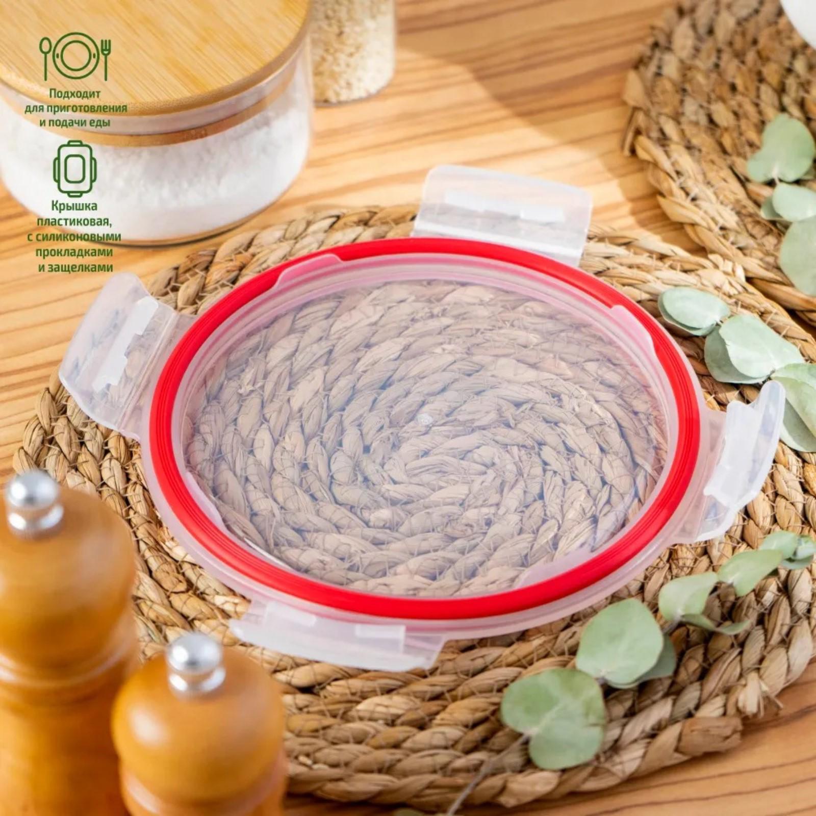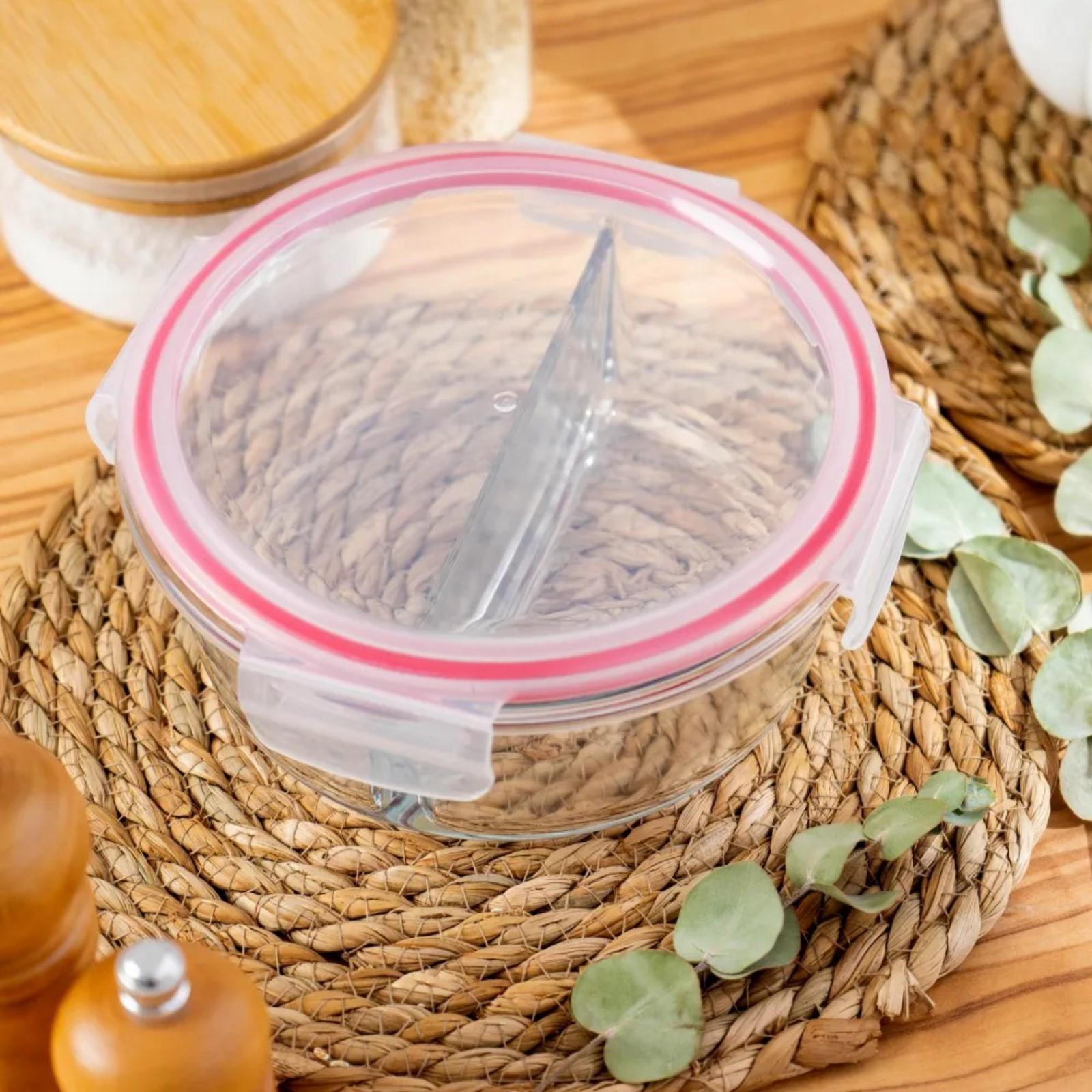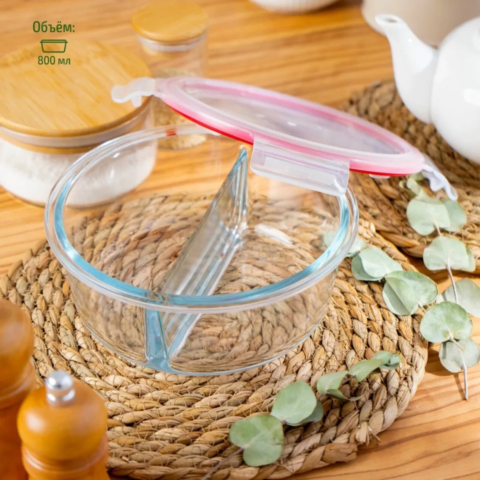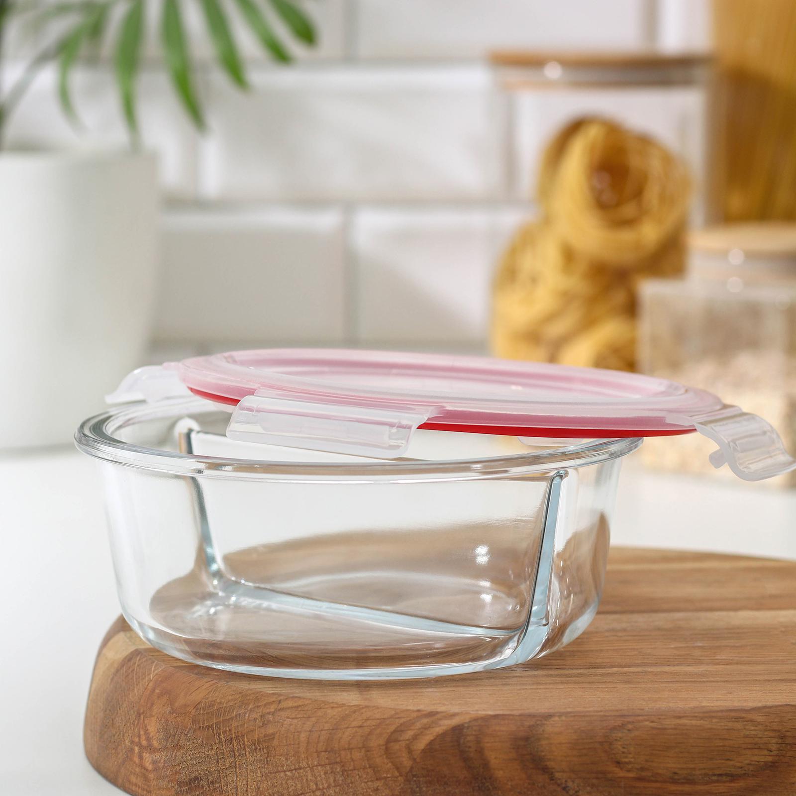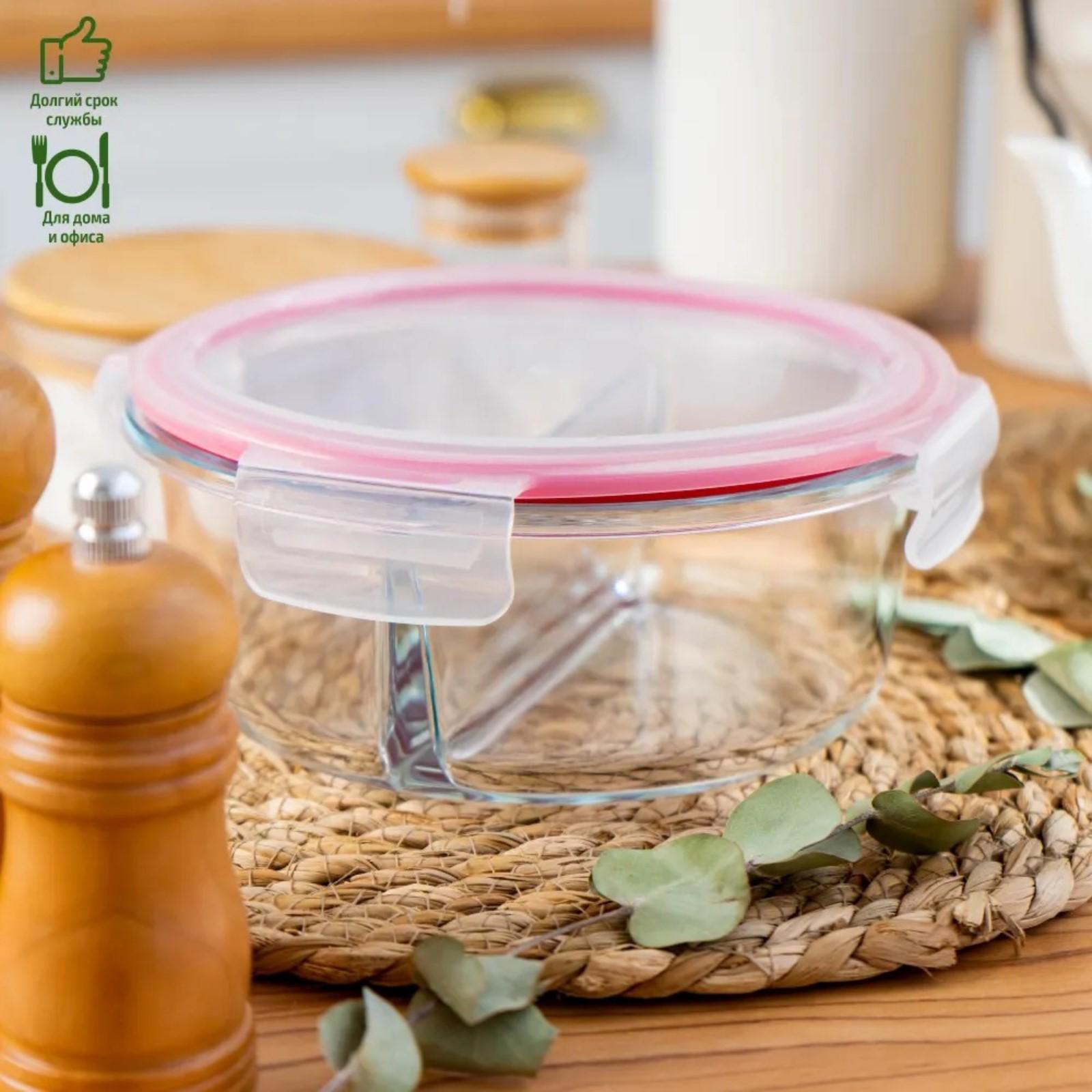Контейнер из жаропрочного стекла Доляна «Клик», двухсекционный, каждая секция 400 мл, 18×7,5 см, круглый, с крышкой