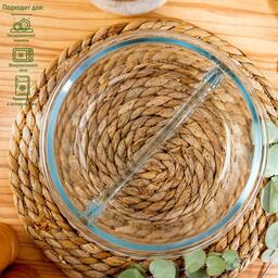 Двухсекционный удобный и вместительный стеклянный контейнер Доляна для хранения, разогрева и переноски продуктов. Прекрасно подойдет для использования в дороге или в офисе.