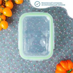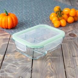 Двухсекционный удобный и вместительный стеклянный контейнер Доляна для хранения, разогрева и переноски продуктов. Прекрасно подойдет для использования в дороге или в офисе.