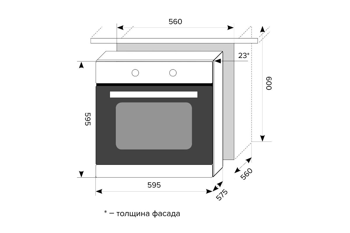 - Размер для встраивания (ВхШхГ): 600х560х560 мм.