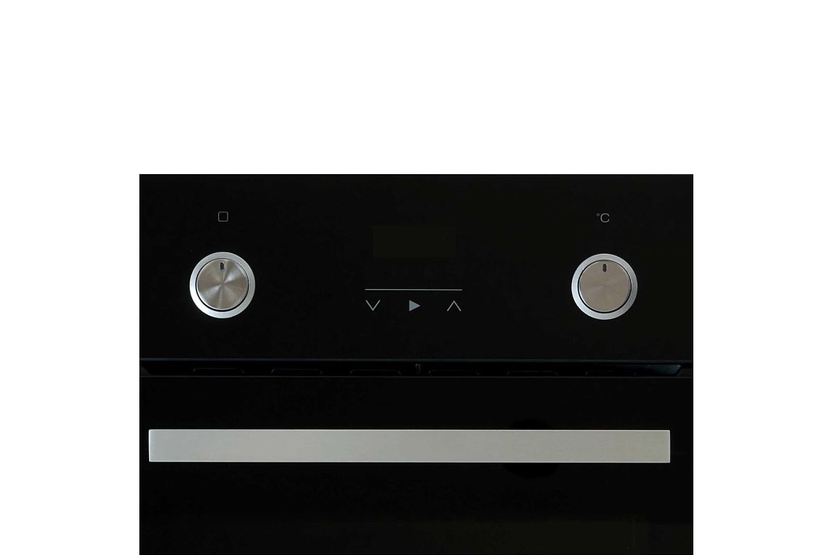 Утапливаемые ручки, объем 55л, LED таймер, 9 функций (3D конвекция, нижний нагрев с 3D конвекцией, верхний и нижний нагрев с конвекцией, традиционный, нижний нагрев, турбо гриль, турбо гриль с конвекцией, подсветка, размораживание), двойное остекление дверцы, традиционная очистка, в комплекте 1 решетка и 1 противень, хромированные направляющие, тонированное матовое стекло