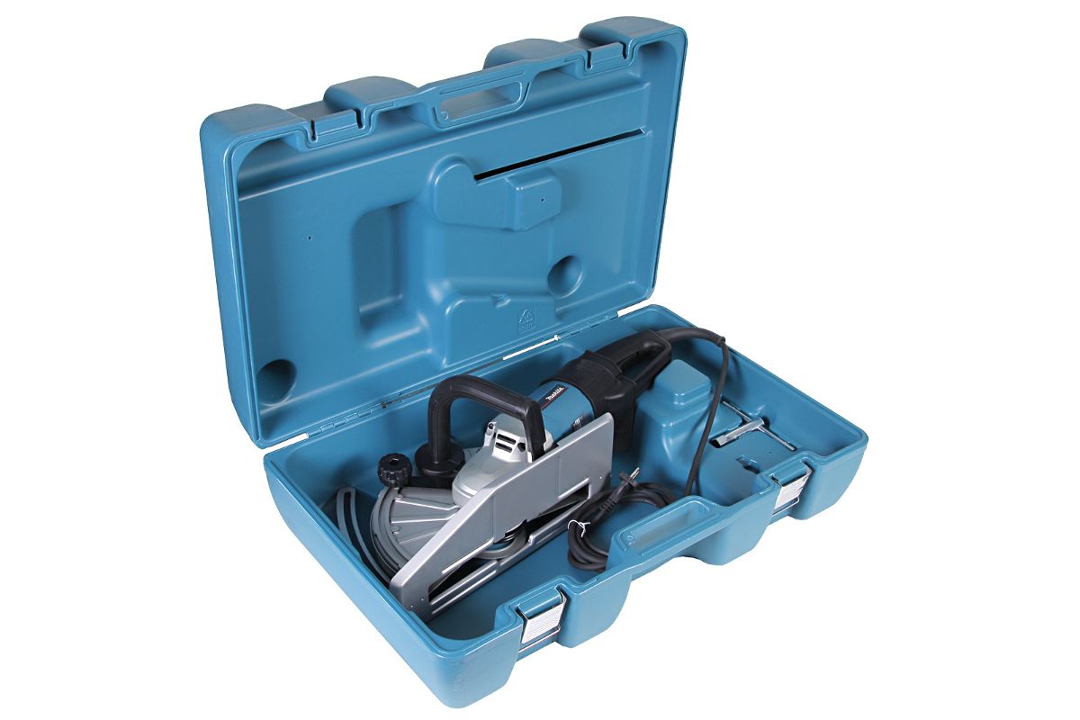 Штроборез MAKITA 4112HS — профессиональный инструмент, одна из разновидностей угловой отрезной машины. Кроме основного назначения (оборудование в твердых материалах каналов для прокладки электропроводки или труб) может применяться для обработки строительных материалов (металла, камня, дерева). Основные преимущества модели: регулируемая глубина реза, наличие двойной защитной изоляции, функция мягкого пуска. Предусмотрен патрубок для подключения пылесоса.