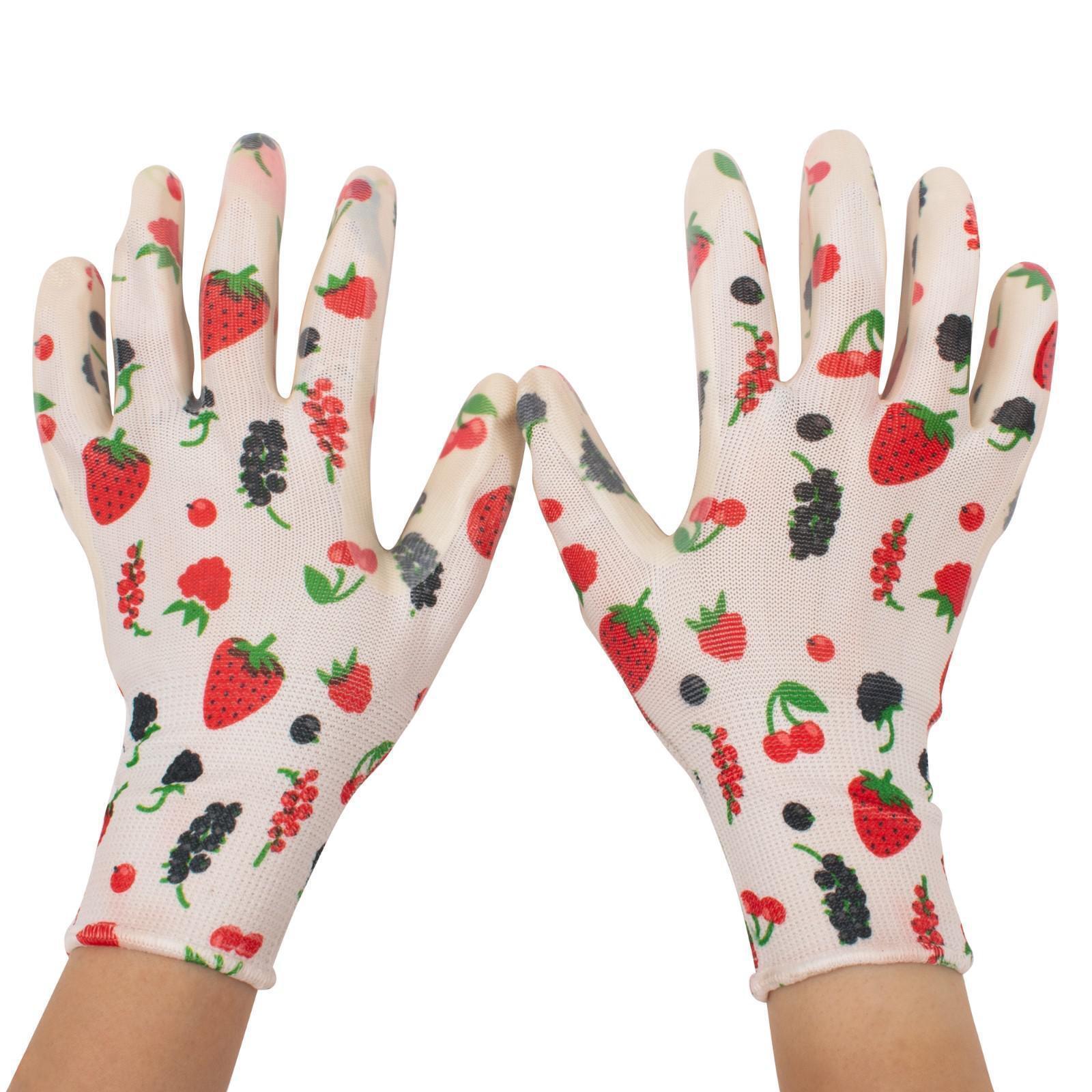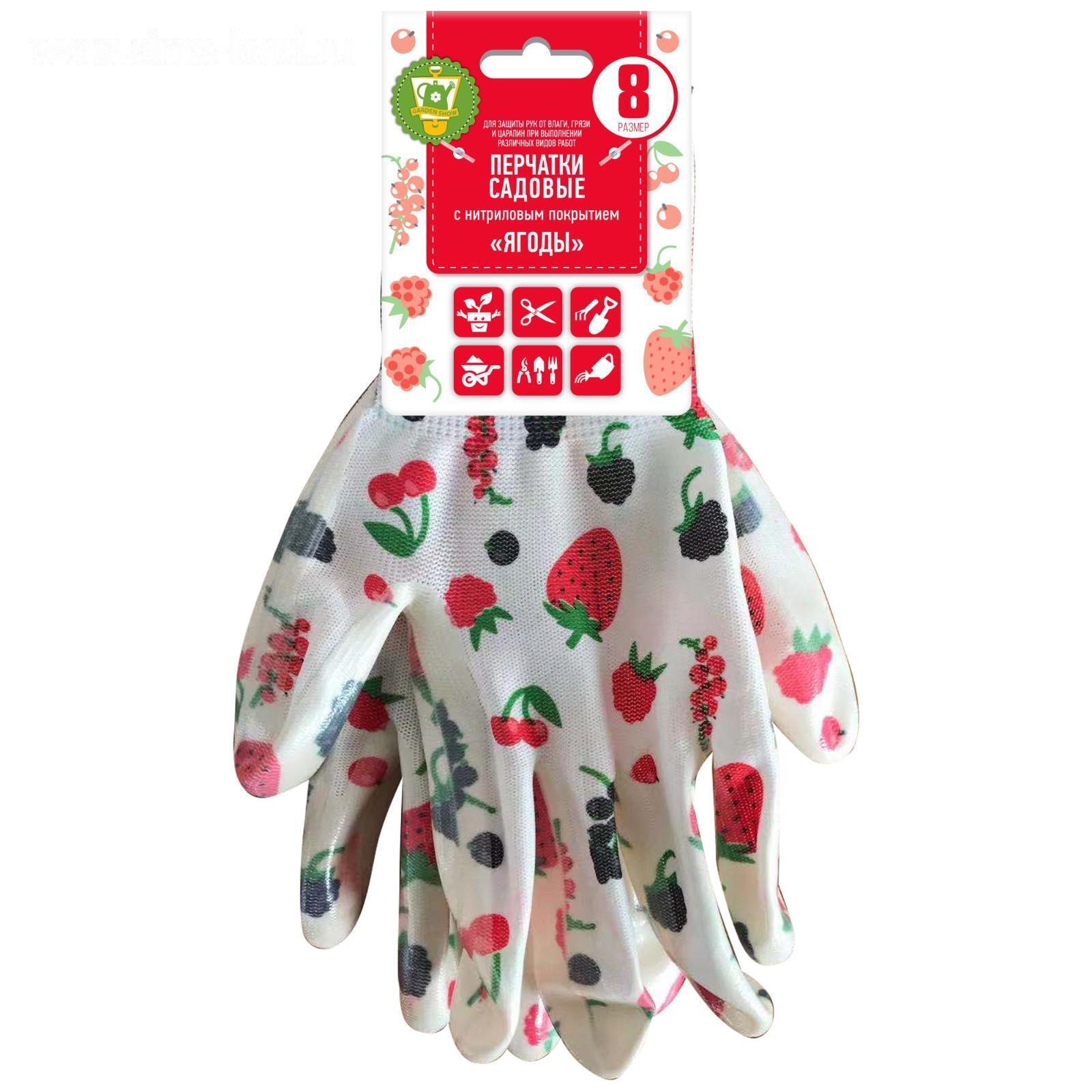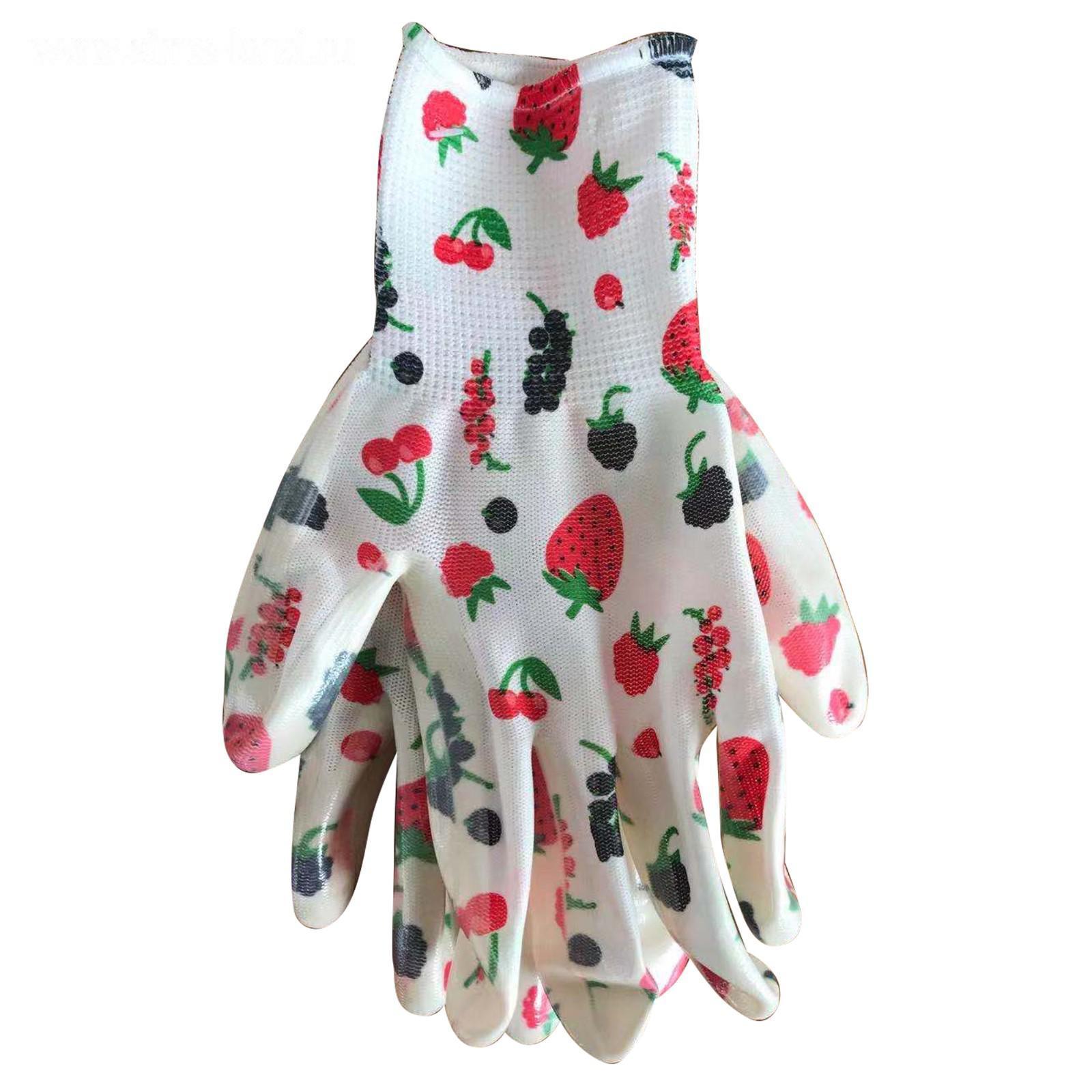 Перчатки полиэстер, с нитриловым покрытием, размер 8, «Ягоды»