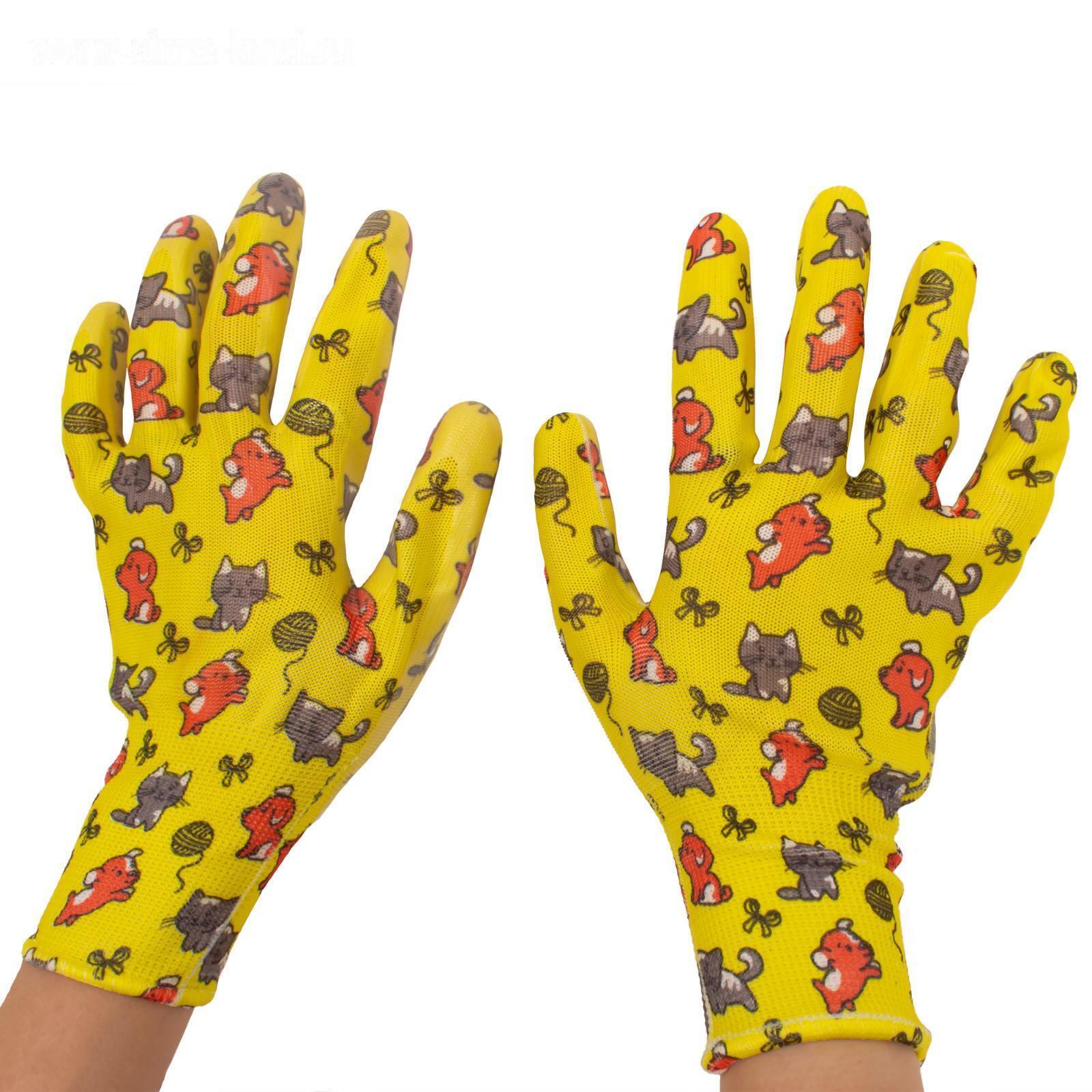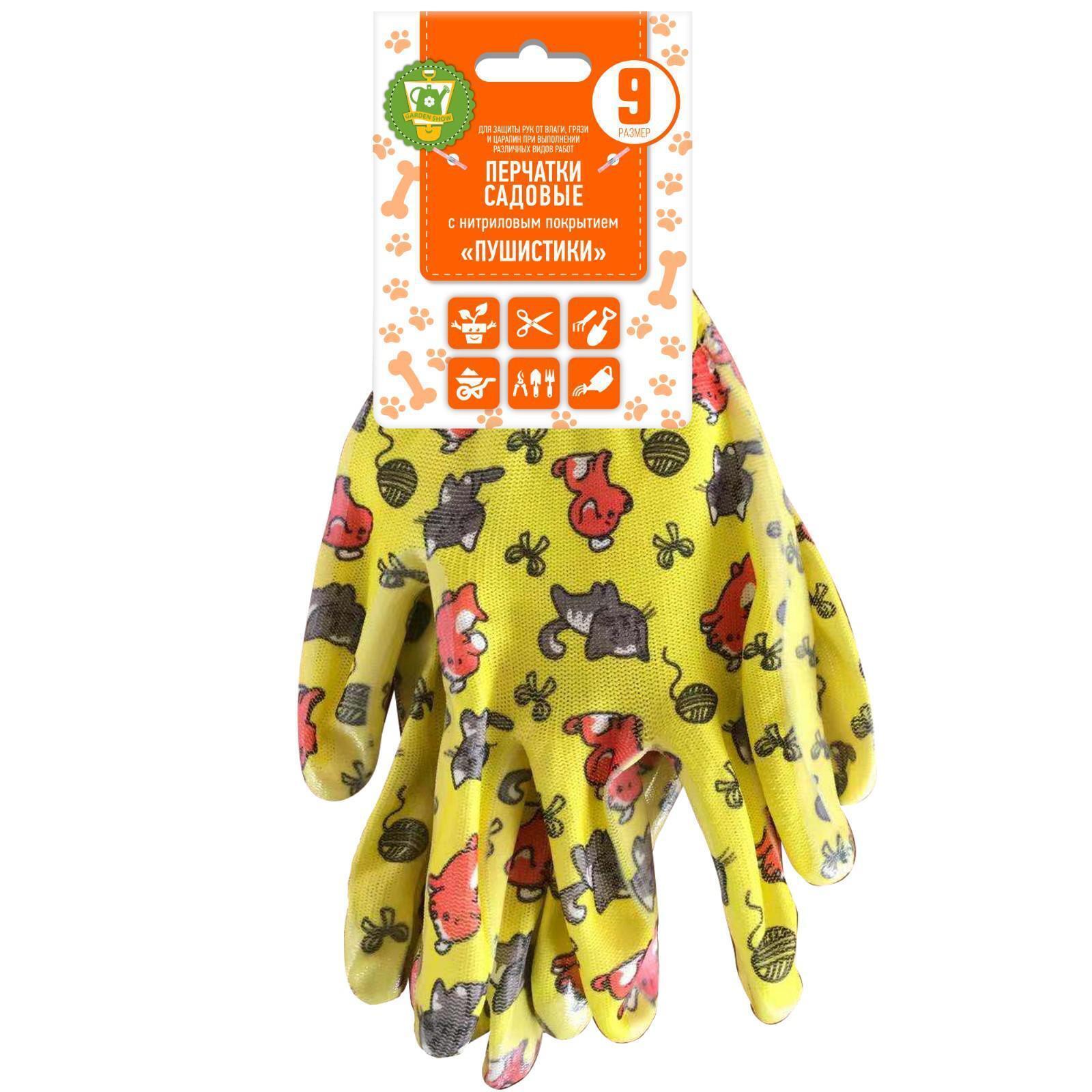 Перчатки полиэстер, с нитриловым покрытием, размер 9, «Пушистики»