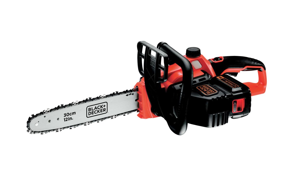 Пила цепная аккумуляторная 36 В. Легкая аккумуляторная пила для обрезки сучьев, распиловки деревьев и пиломатериала диаметром до 25 см. Аккумуляторная технология сочетает свободу места применения бензопилы с такими преимуществами электропилы, как тихая работа, отсутствие выхлопных газов, возможность работ в помещении, простоту в обслуживании и отсутствие необходимости приготовления топливной смеси. По сравнению с электропилой, дополнительная безопасность из-за отсутствия высоковольтного провода в зоне проведения работ. Шина 30 см, бесключевой натяжитель, натяжение цепи без инструмента, цепь 3/8'', 45 звеньев, 1,1 мм, автоматическая подача масла. Аккумулятор 2.0Ач Li-Ion. Элемент единой платформы BLACK+DECKER 36 Вольт. Используйте один аккумулятор на любом из шести устройств садовой техники. Без АКБ и ЗУ.