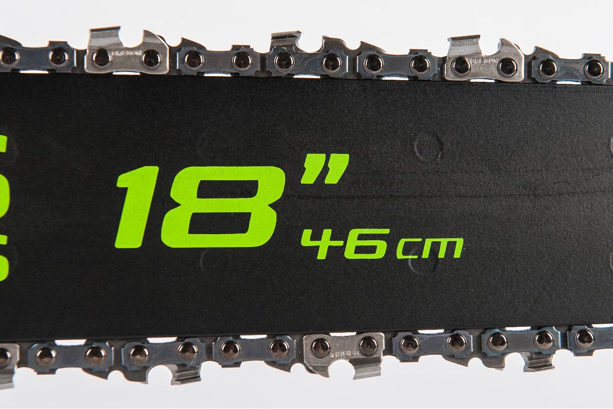 Пила оснащена сменными шинами 40 и 45 см из кремнистой стали и цепями производства компании Oregon. Масляный бачок для смазки цепи имеет прозрачный корпус объемом 180 мл, чтобы вы всегда могли следить за уровнем масла. Для безопасности предусмотрен предохранитель включения и тормоз цепи.