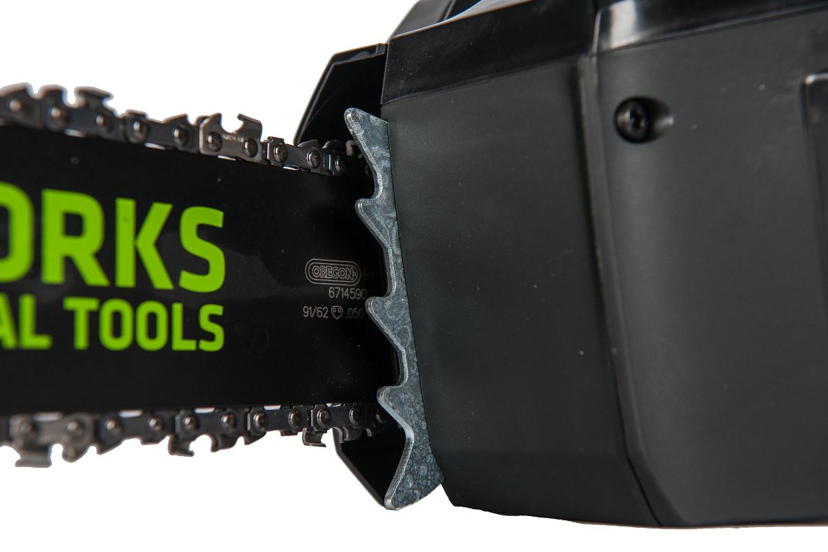 Цепная пила GREENWORKS работает от аккумуляторных батарей 82V Commercial. Благодаря высокотехнологичным ячейкам, плате управления и защитному чипу, они обладают долгим сроком службы - до 2000 циклов заряда-разряда, поддерживают функцию быстрой зарядки и заряжаются на 50% за 30 минут, а на 100% за 60 минут. И эти батареи можно использовать не только с этой пилой, но и с другими устройтсвами линейки GREENWORKS 82V Commercial.
