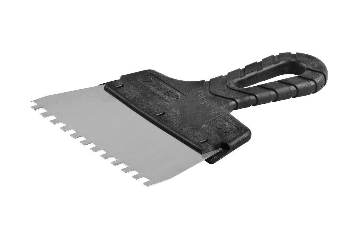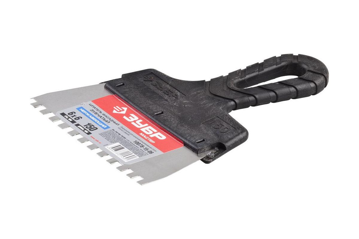 Шпатель ЗУБР ''МАСТЕР'' ФАСАДНЫЙ 10078-15-06 нержавеющее полотно, 150мм, зуб 6х6мм нержавеющее полотно, пластмассовая рукоятка, размер зубьев 6х6 мм