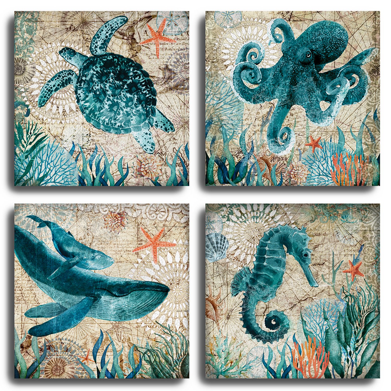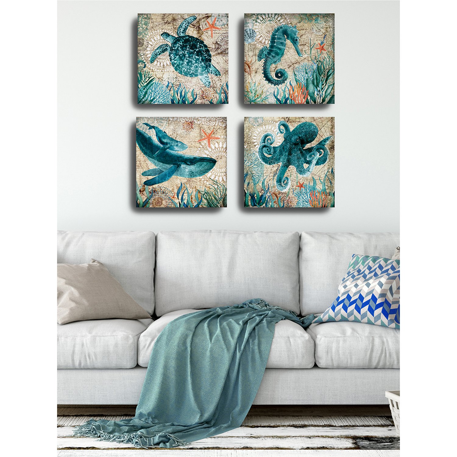 Комплект картин на холсте LOFTime с подрамником Подводный мир 4 шт 30х30 см К-145-3030
