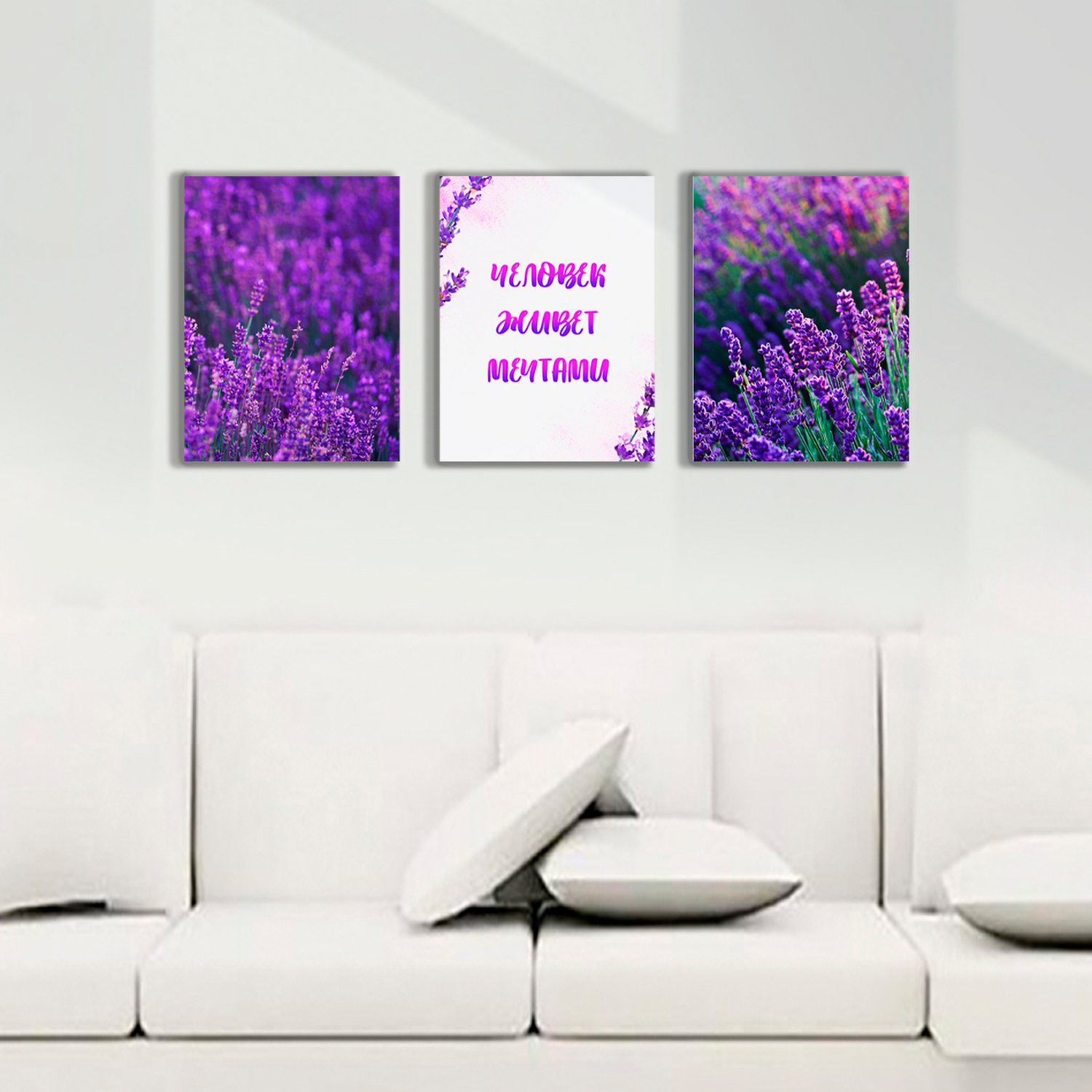 Комплект картин на холсте LORI интерьерных на стену 3 в 1 Лаванда 40х30 см Им-По-076