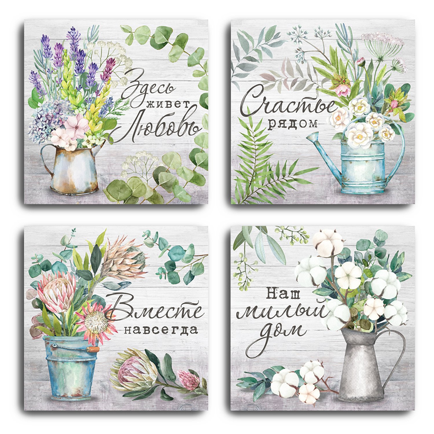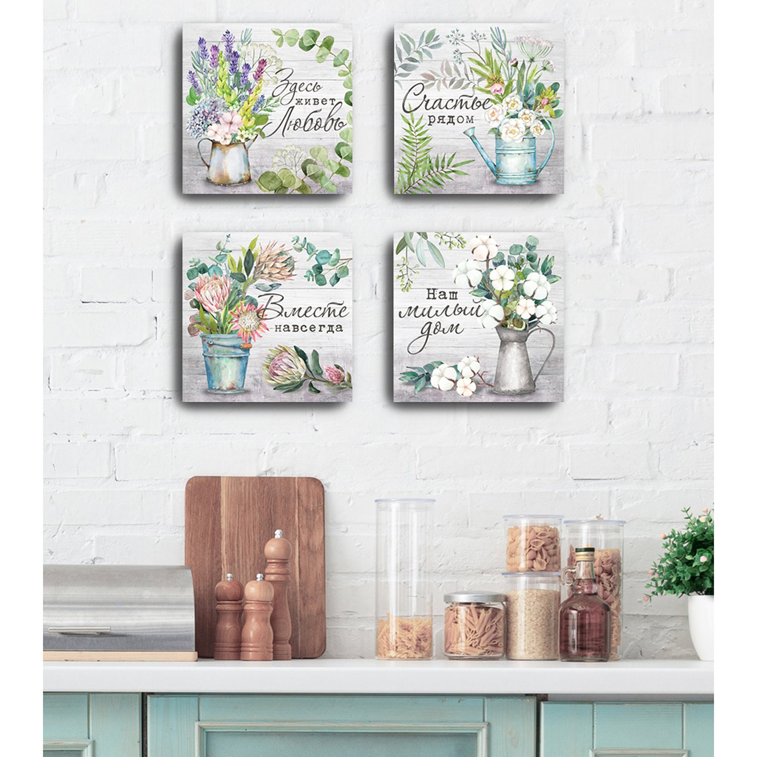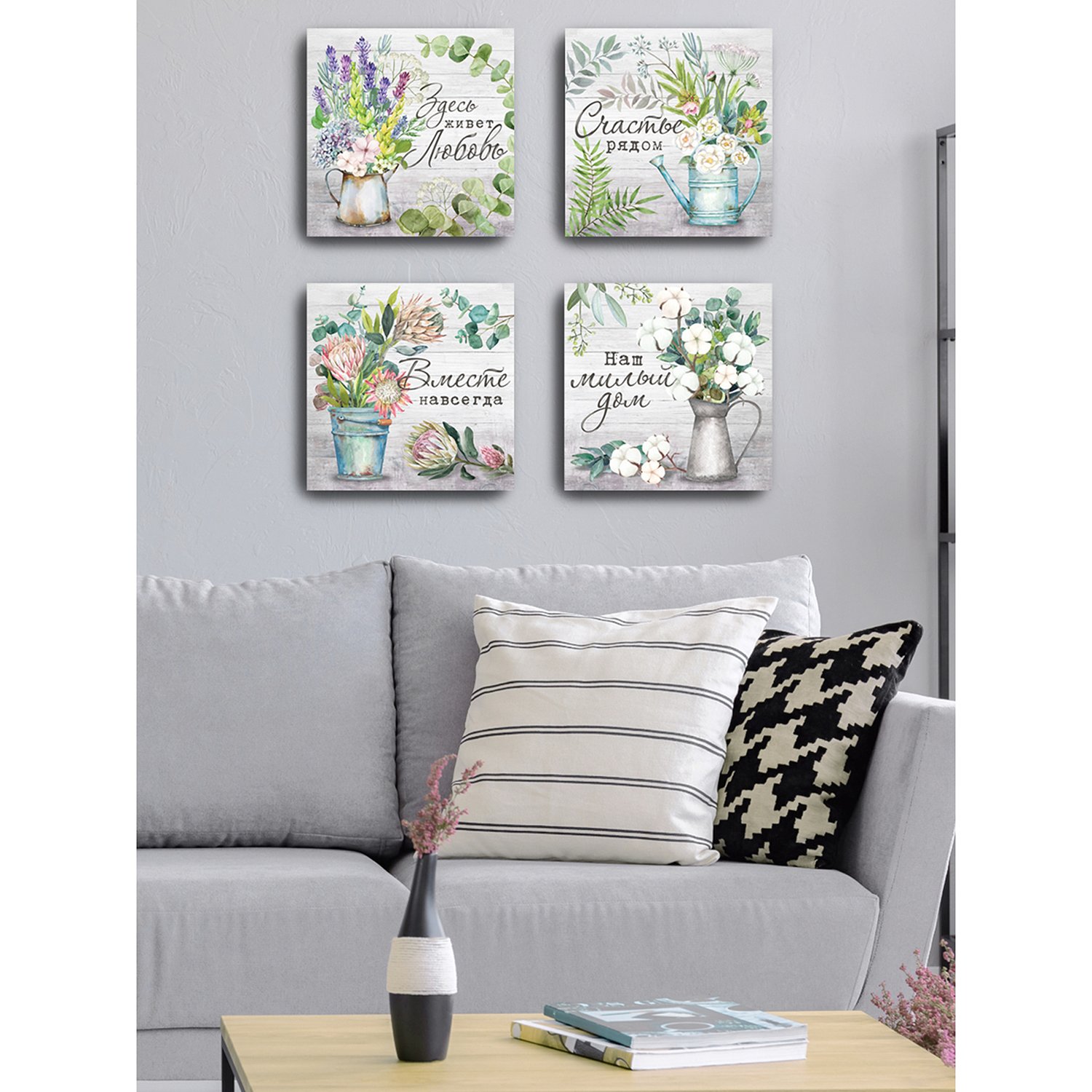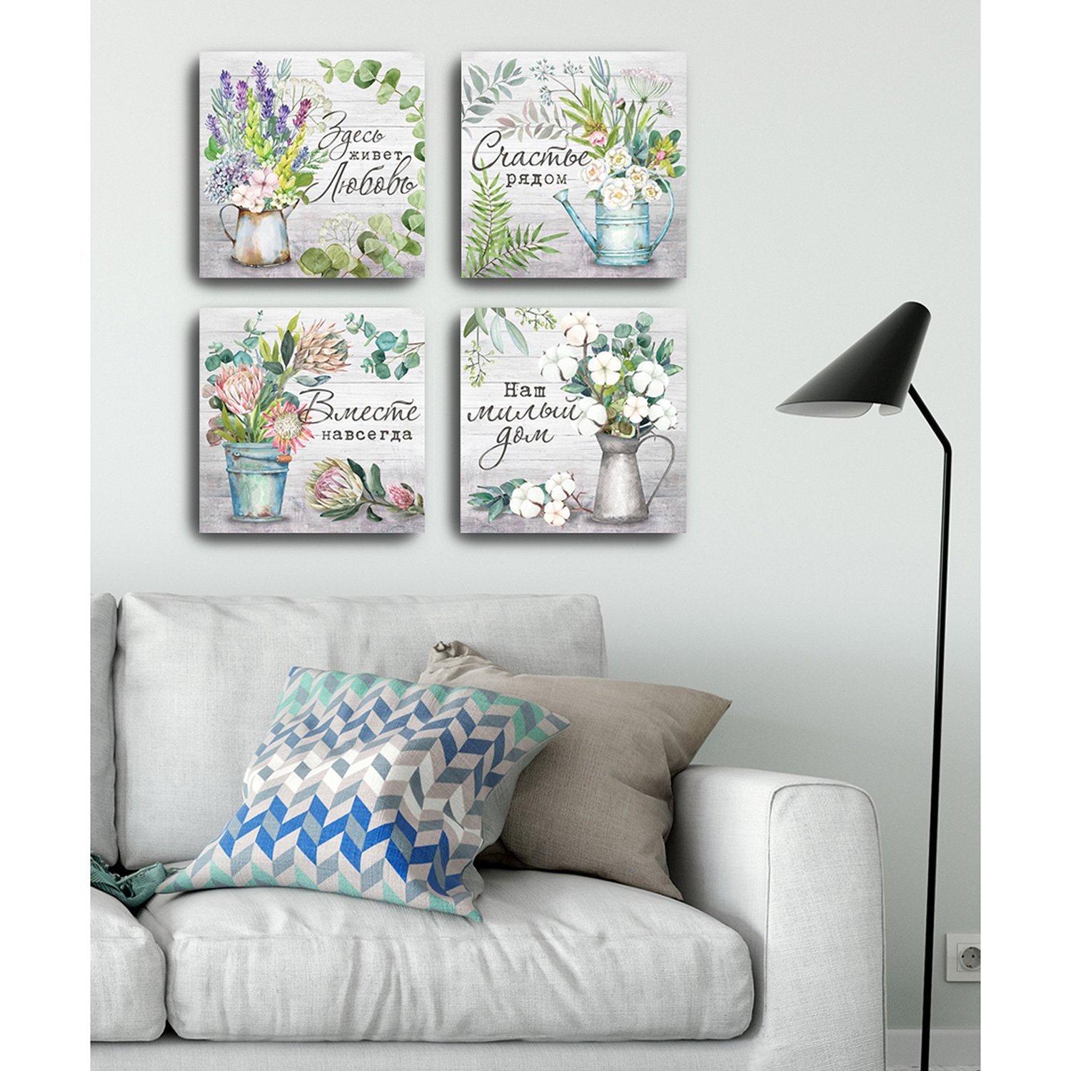 Комплект картин на холсте LOFTime с подрамником Вместе счастье дом любовь 4 шт 30х30 см К-142-3030
