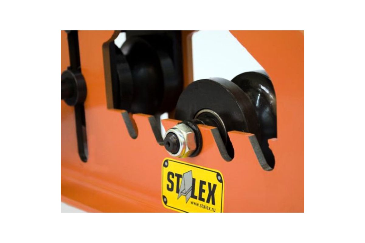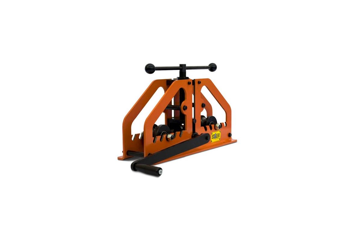 STALEX TR-60 – универсальный ручной профилегибочный станок. Будет полезен в ремонтной мастерской, на даче или стройплощадке. Подходит для сгибания труб, прутьев, швеллера и профиля разной формы. В комплекте нет роликов для работы с профильной трубой – их можно докупить отдельно.