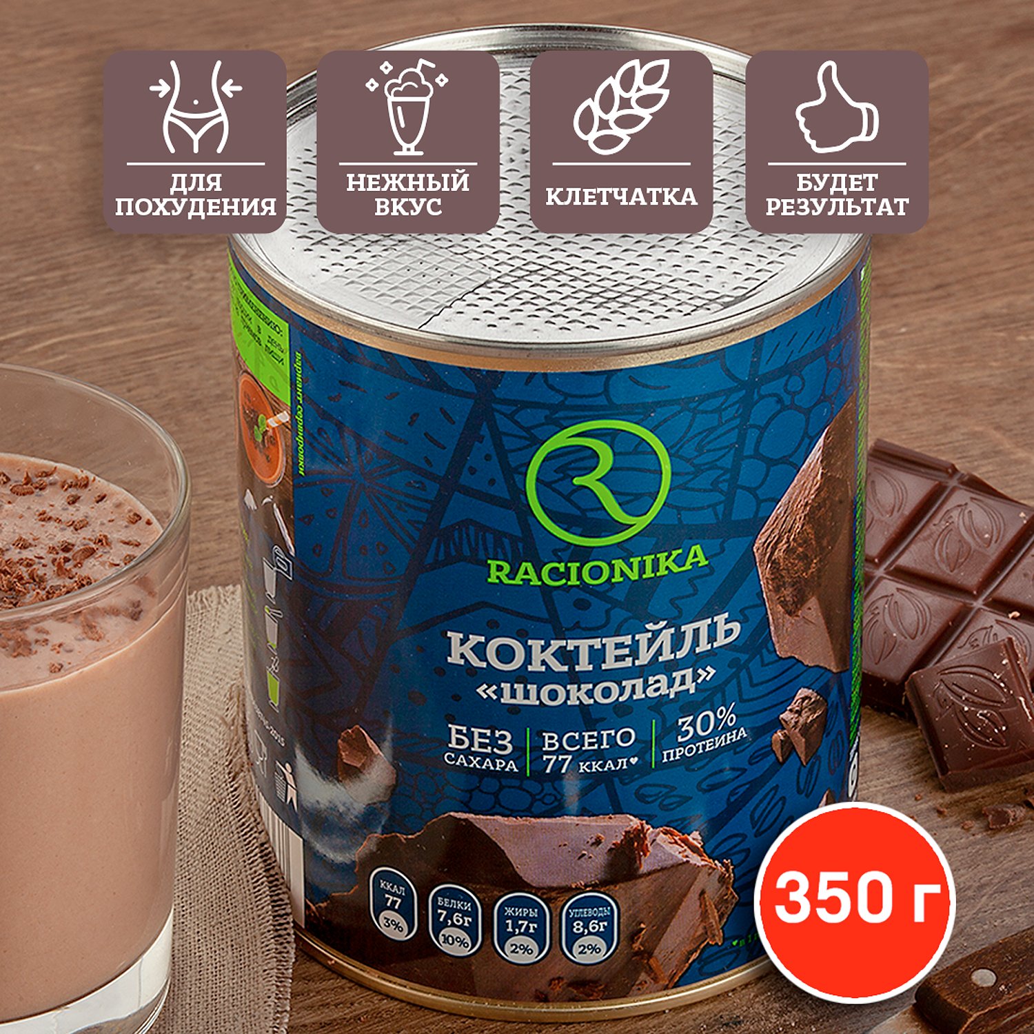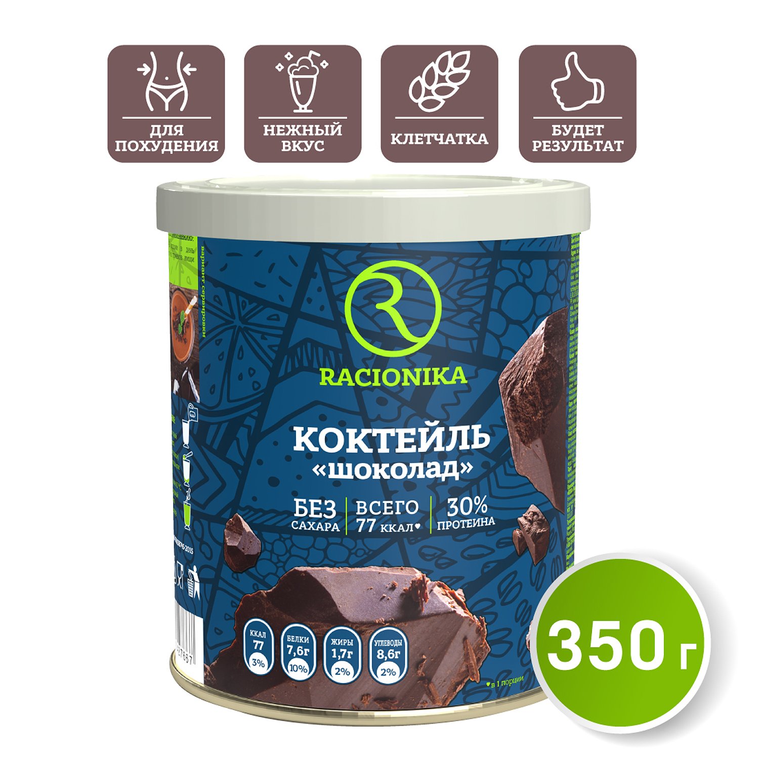 Диет-коктейль Racionika со вкусом шоколада банка 350 г 92982146