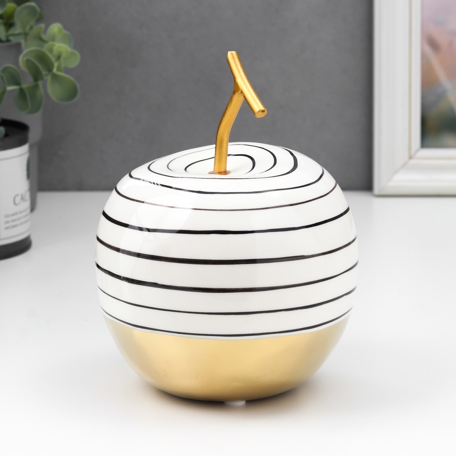 Сувенир керамика "Полосатое яблоко" с золотом 15,5х12х12 см