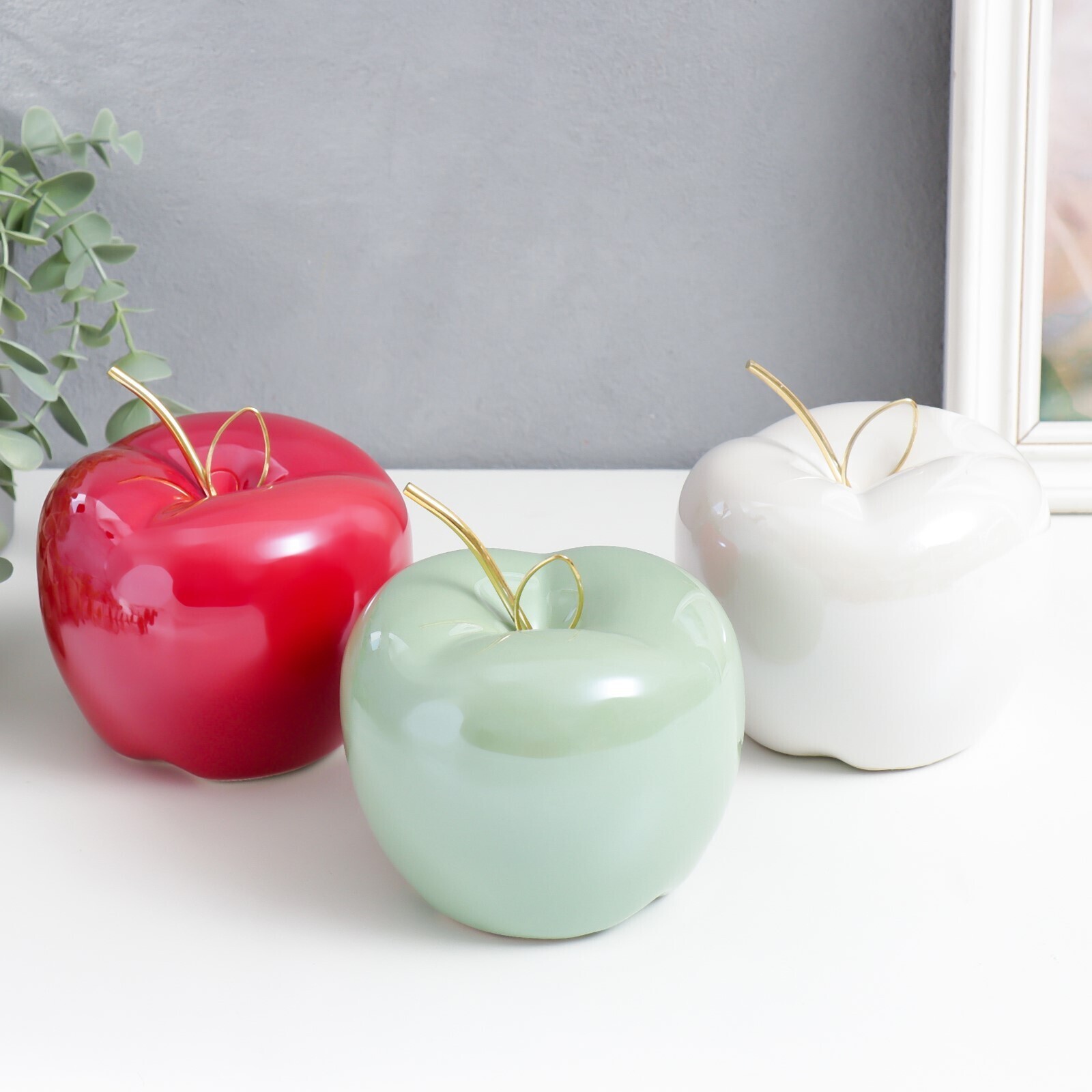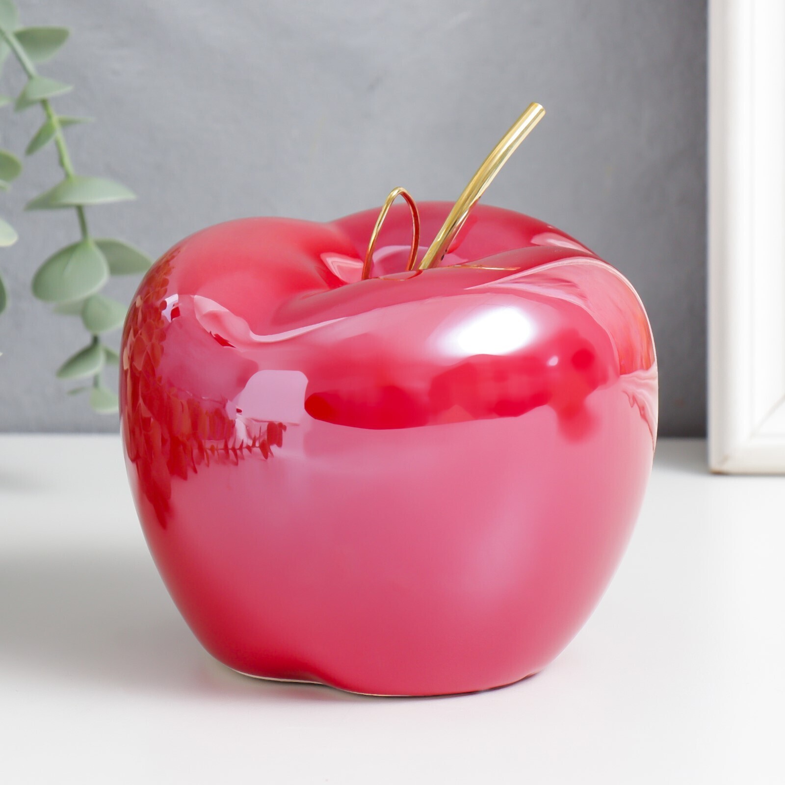 Сувенир керамика, металл "Яблочко перламутр с веточкой" МИКС 10,5х10,5х13 см