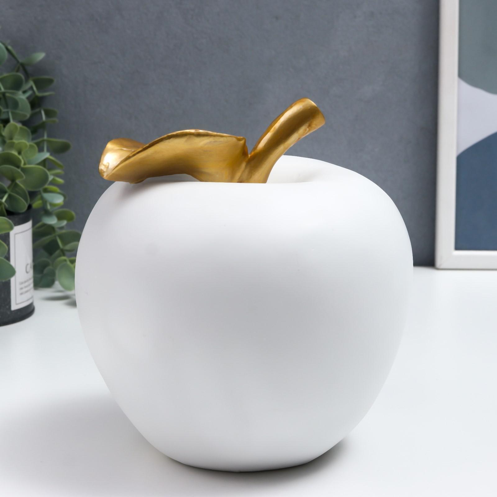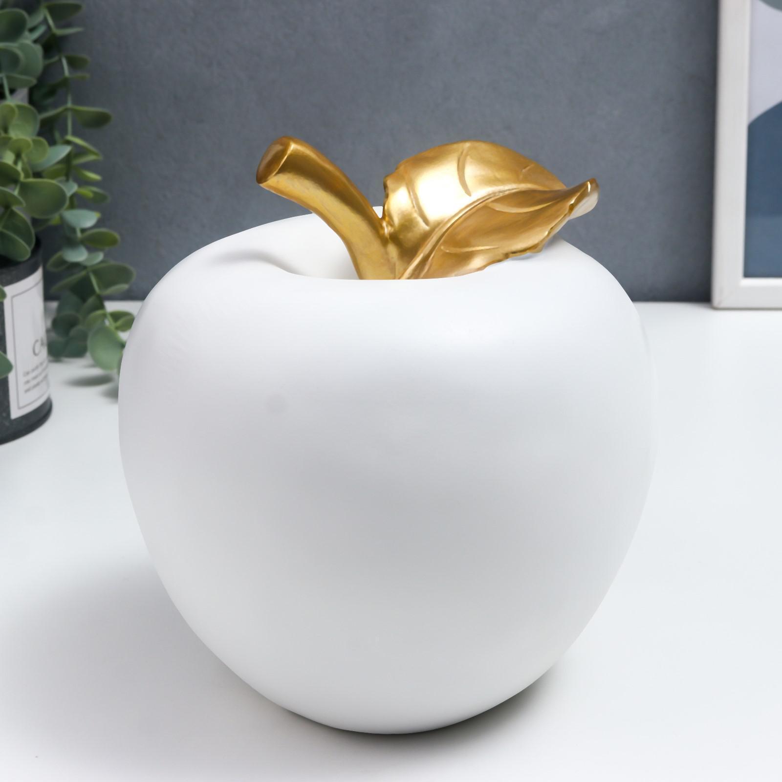 Сувенир полистоун "Белое яблоко с золотым листочком" 18,5х17х17 см