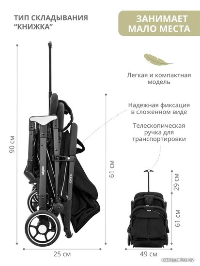 • Высота в сложенном состоянии 61 см (+ 29 см ручка)