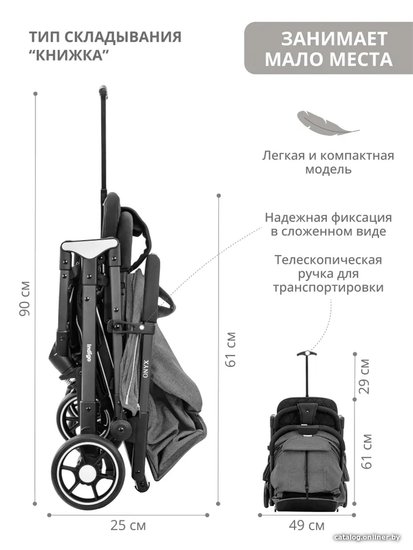• Высота в сложенном состоянии 61 см (+ 29 см ручка)