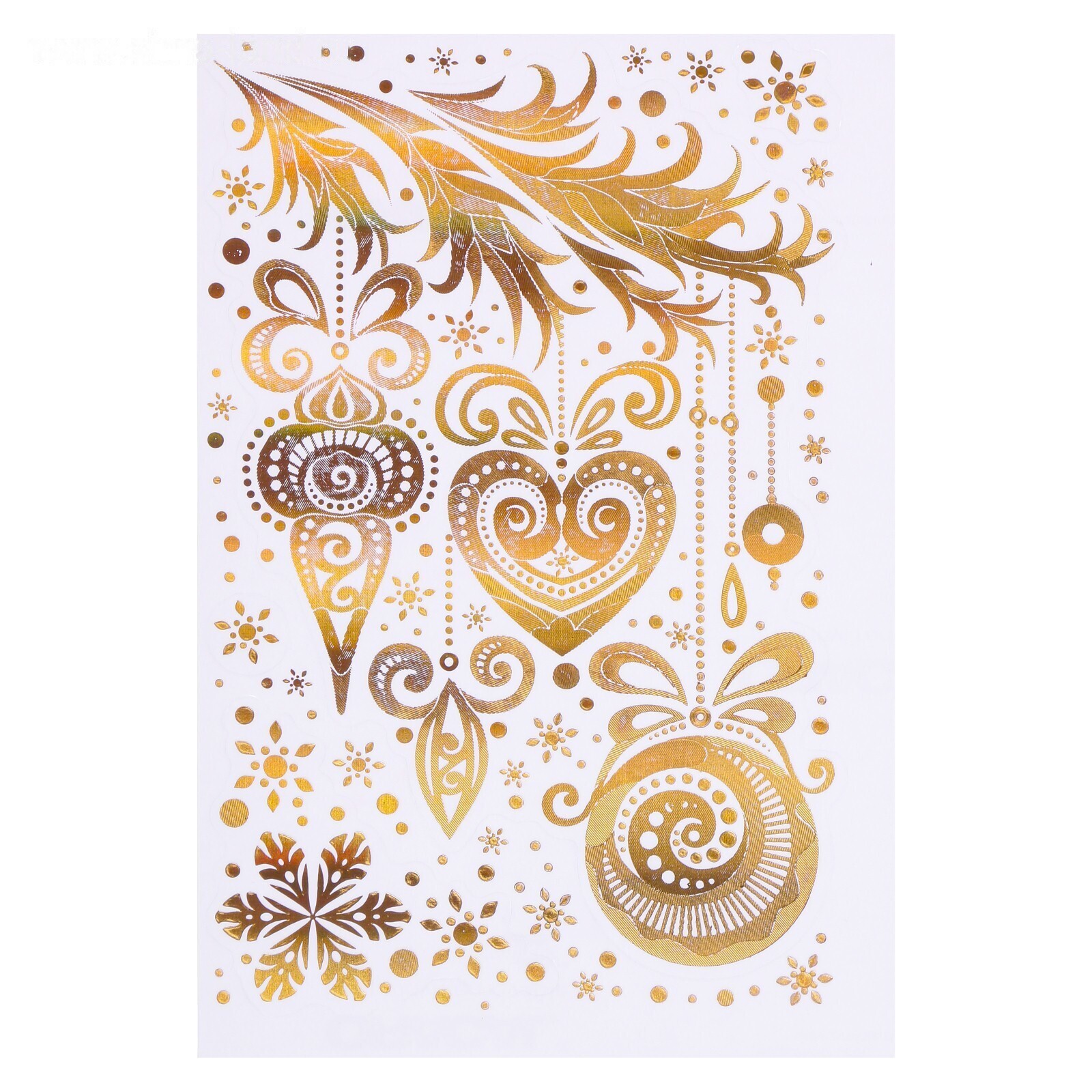 Набор наклеек "Ёлочные игрушки" золотая голографическая фольга, снежинки, 16,7 х 24,6 см