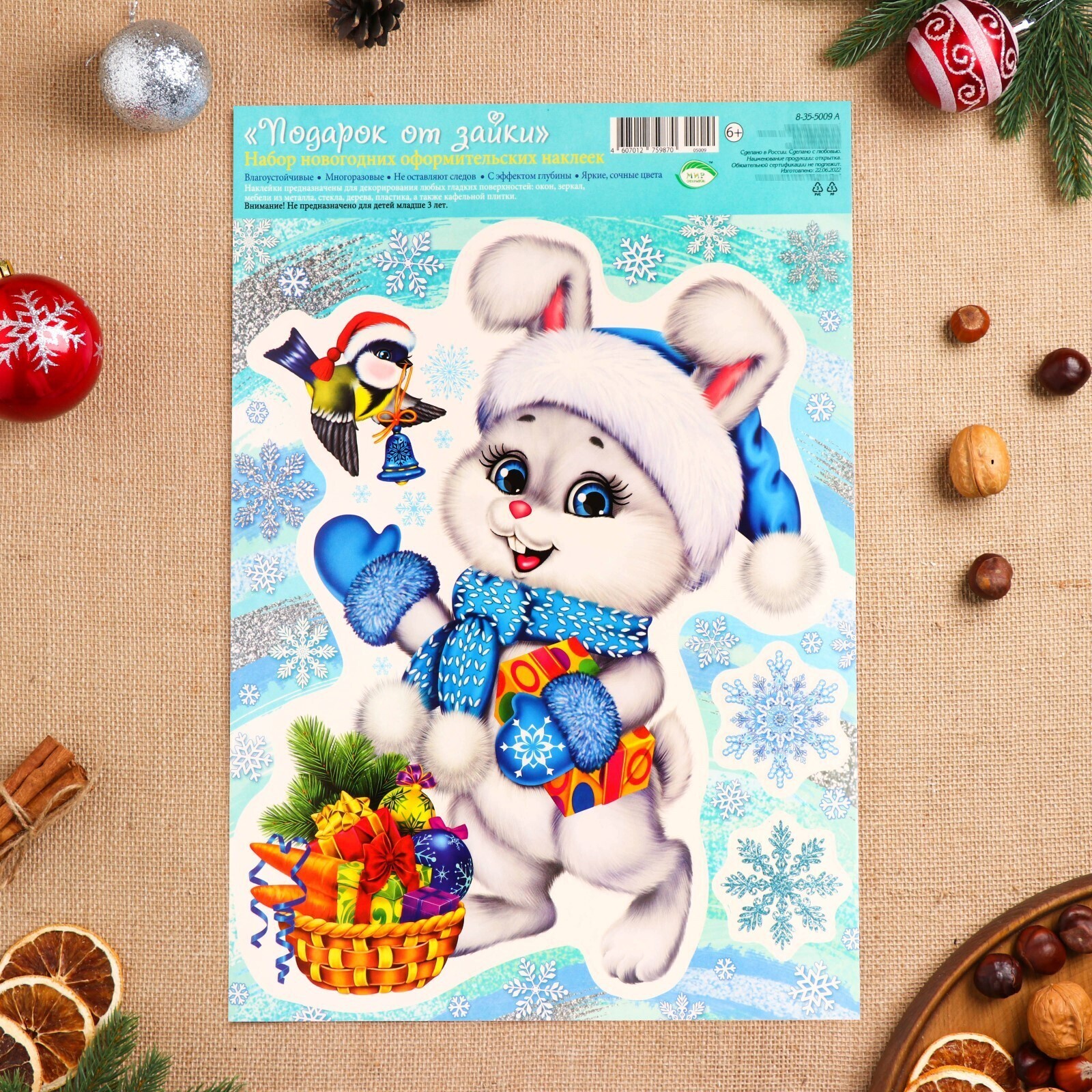 Набор наклеек оформительский "Подарок от зайки" 33,8х24,4см