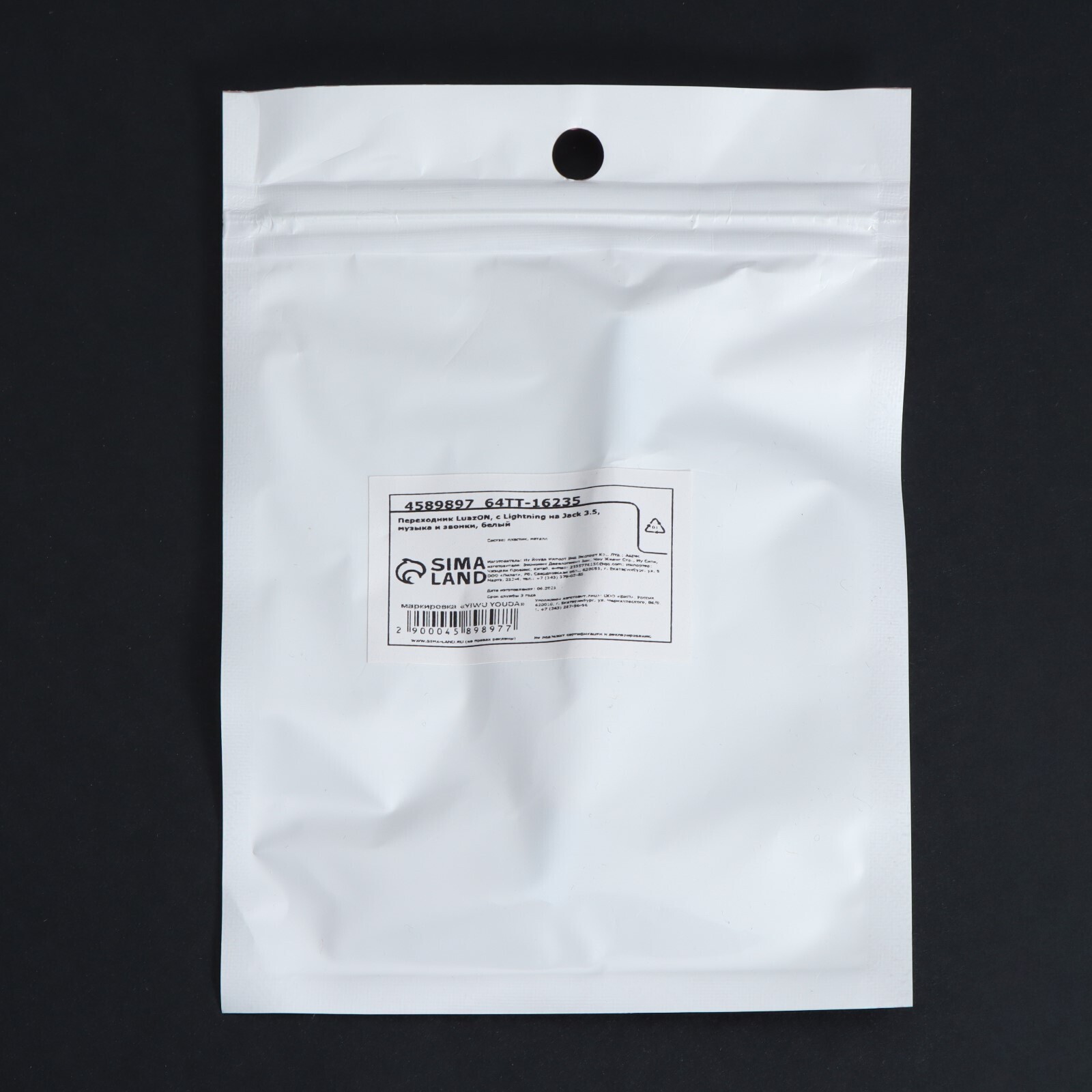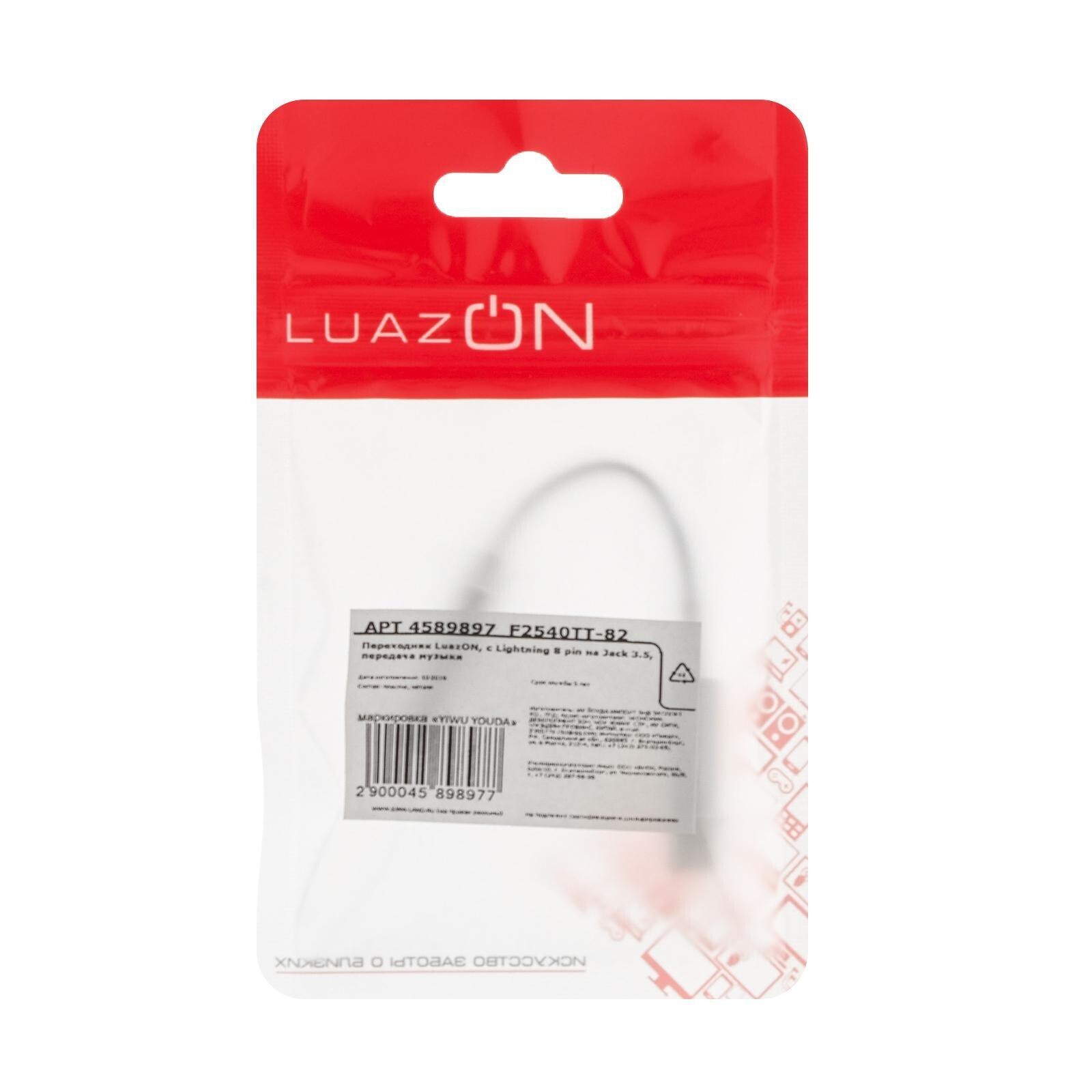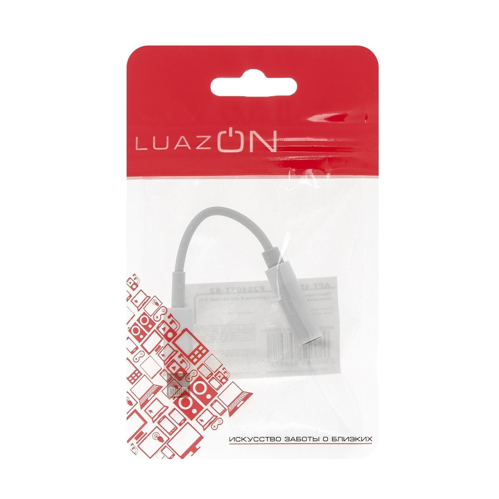 Переходник LuazON, с Lightning на Jack 3.5, музыка + гарнитура, от iOS 10.3, белый